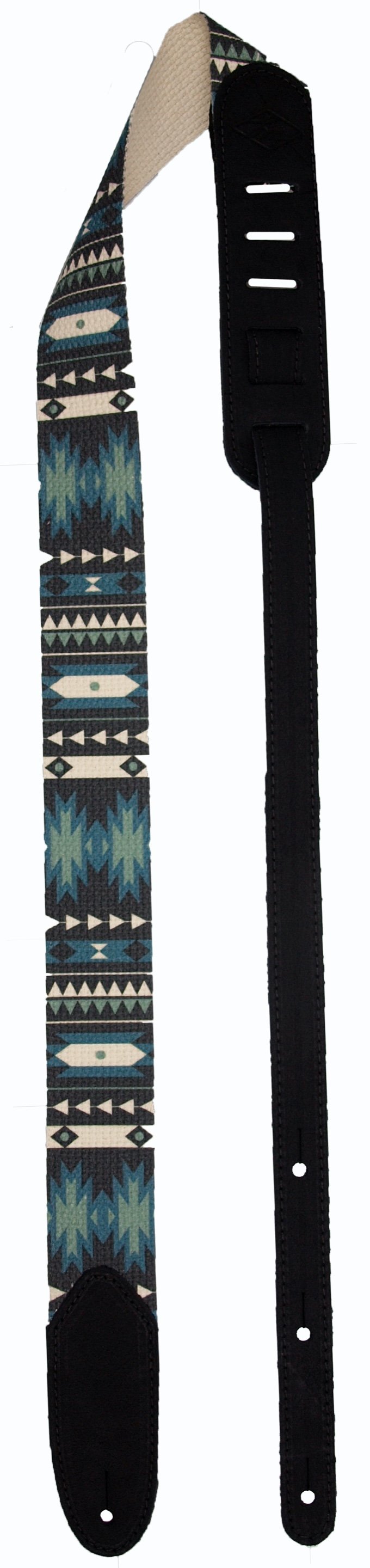Gitarrengurt 2” aus Baumwolle mit gealterten Wildlederenden Gitarrengurt aus Baumwolle mit gealterten WildlederendenDesign im Southwestern-StilHAUPTMERKMALELänge: Verstellbar von 44” bis 58”Breite: 2”Material: Bedruckte Baumwolle, gealterte WildlederendenMuster: SW21