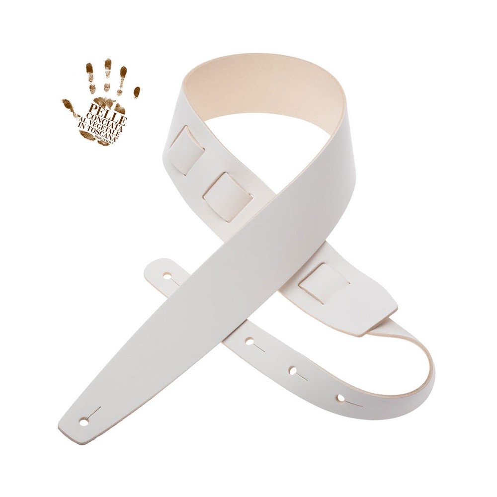 HOLES HC CORE BIANCO 6 CM. Tracolla per chitarra e basso elettrico realizzata in vera pelle di alta qualità 100% Made in Italy, Concia al Vegetale certificata, senza cuciture, larghezza 6 cm e lunghezza regolabile da 105 a 142 cm.