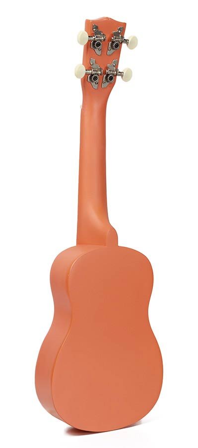 KORALA UKS-15 LBU SOPRANO ORANGE ist ein Soprano-Ukulele, das vollständig aus Hartholz gefertigt ist, mit Gitarrenmechaniken, glänzender orangefarbener Oberfläche und Kunststoff-Sattel/Steg.