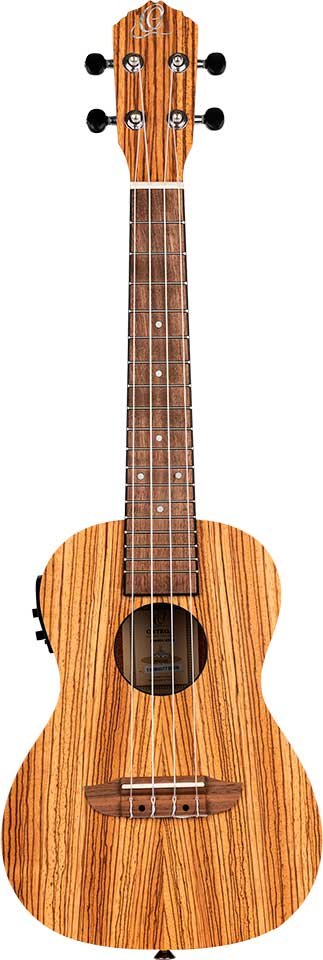 Ukulele-Konzert. Decke aus Fichte, Zargen und Boden aus Zebrano. Hals aus Mahagoni, Griffbrett aus Sonokelin. Gussmechaniken. Preamp Ortega Magus pro. Deluxe-Tasche inklusive.