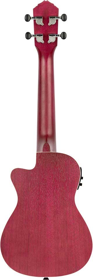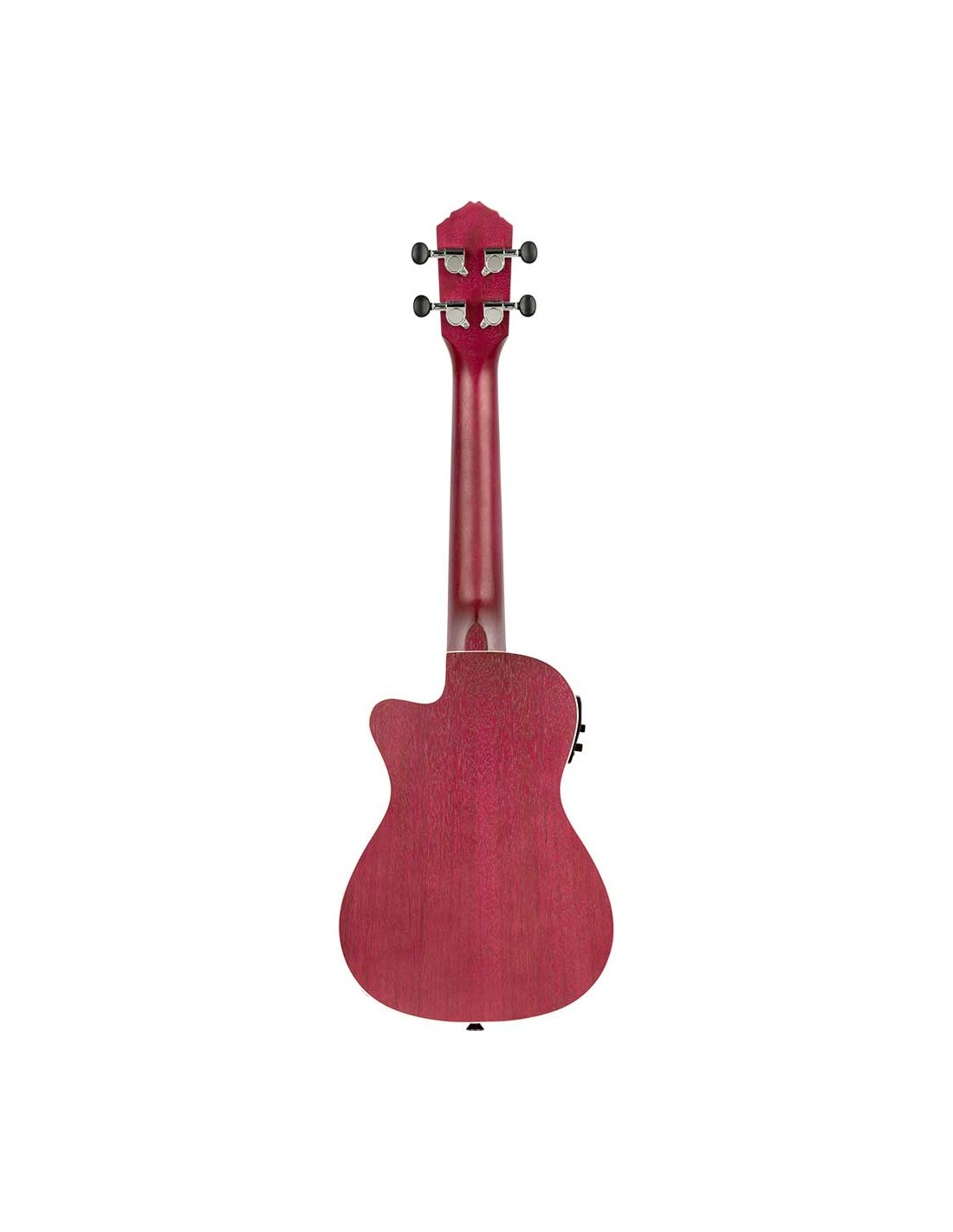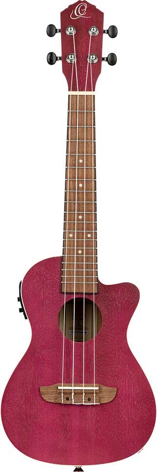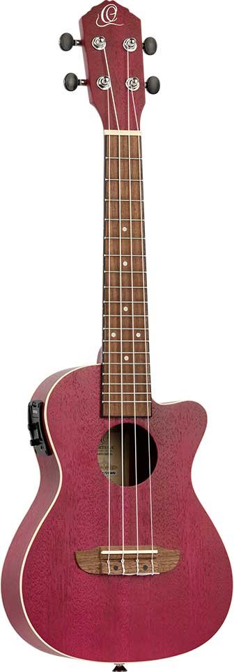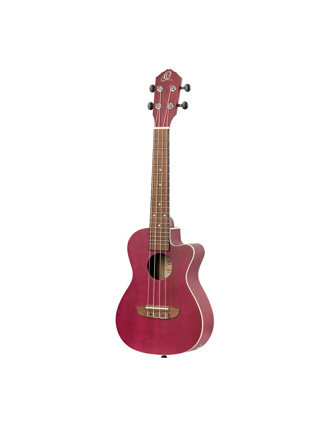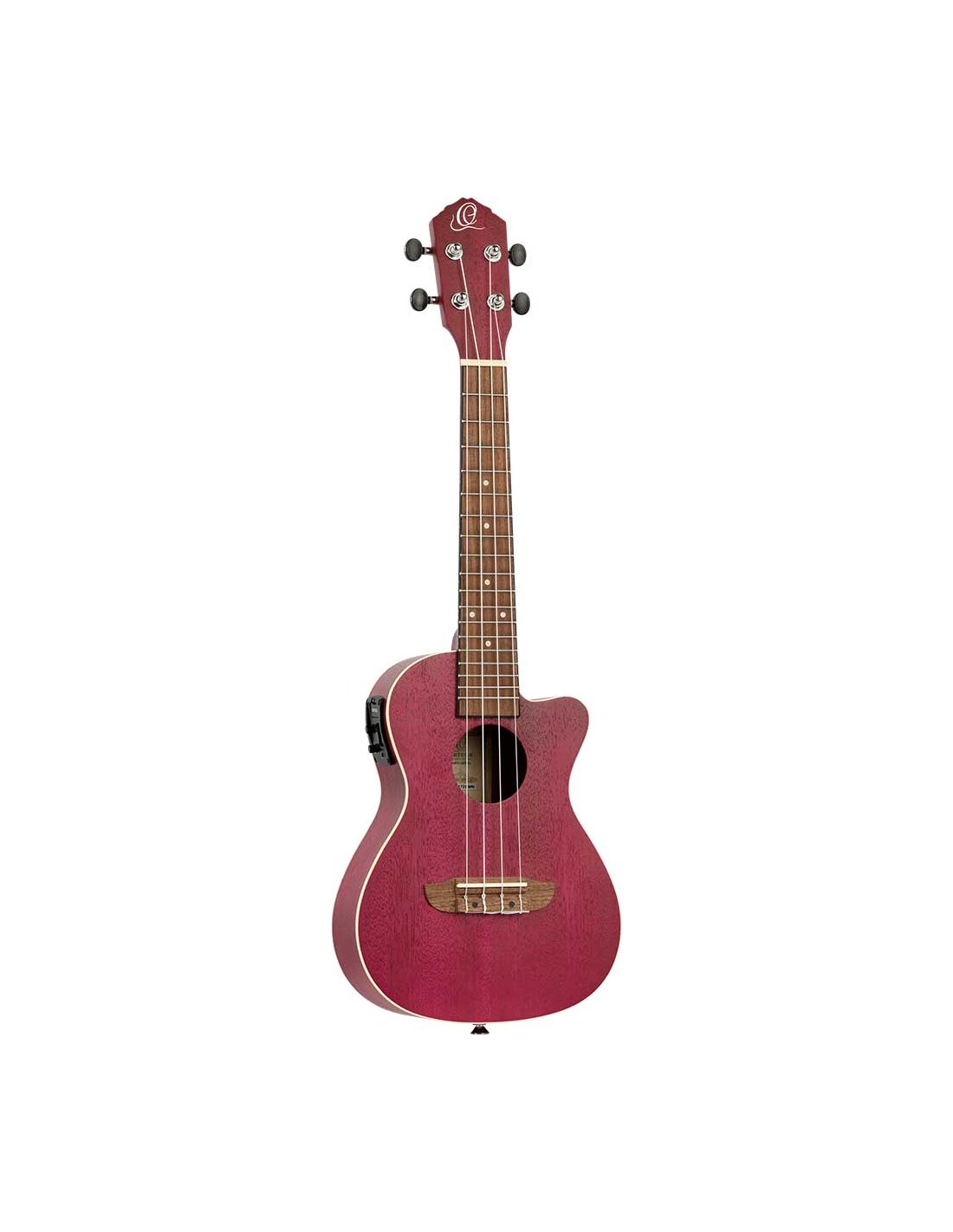 Ukulele-Konzert elektrifiziert Cutaway. Preamp Ortega MagusUke. Rubinfarbe.