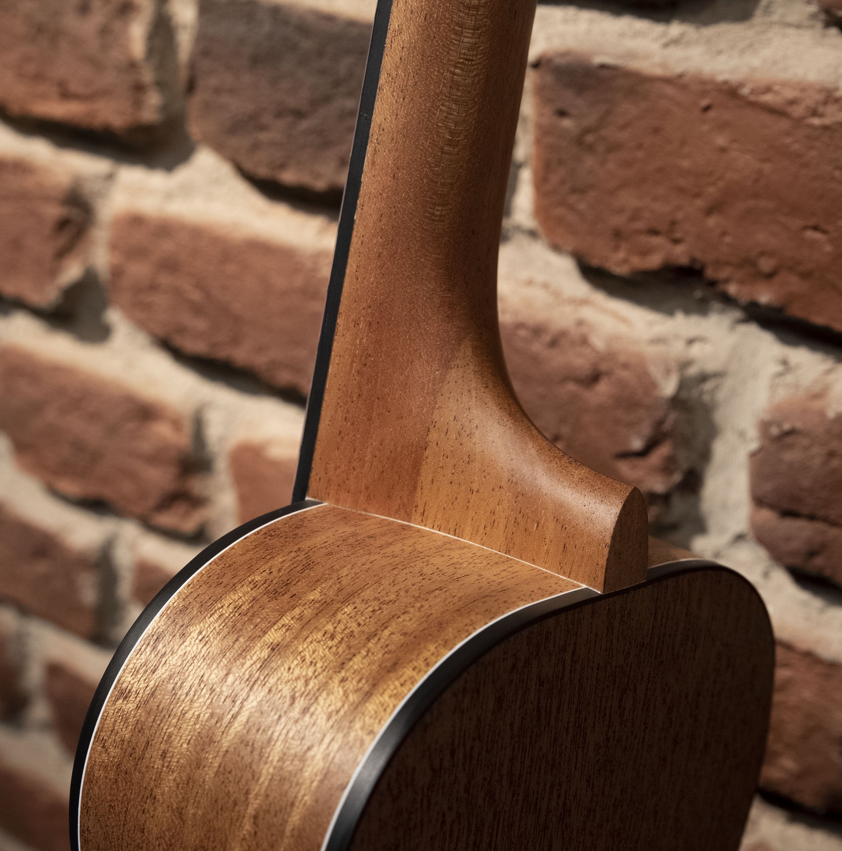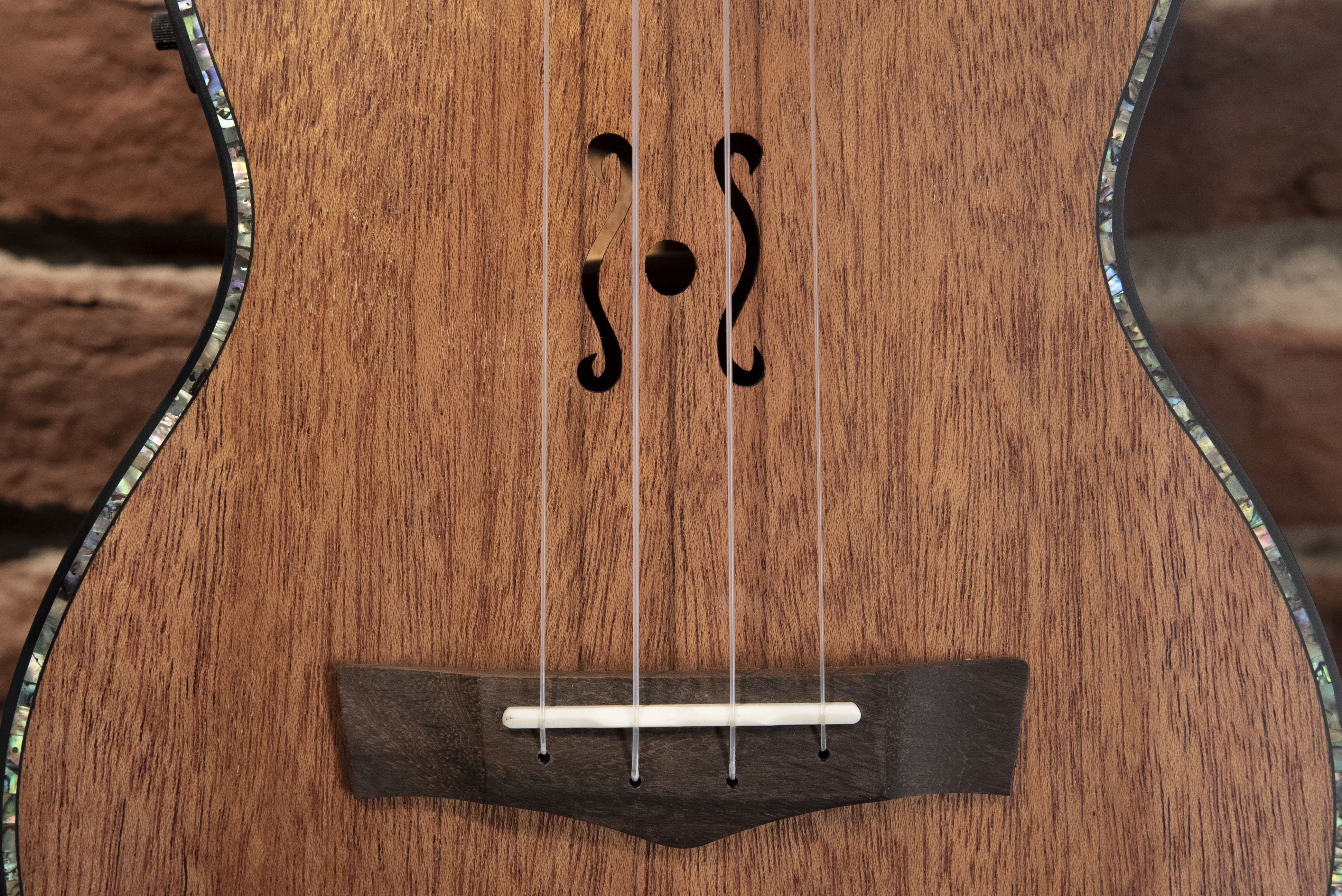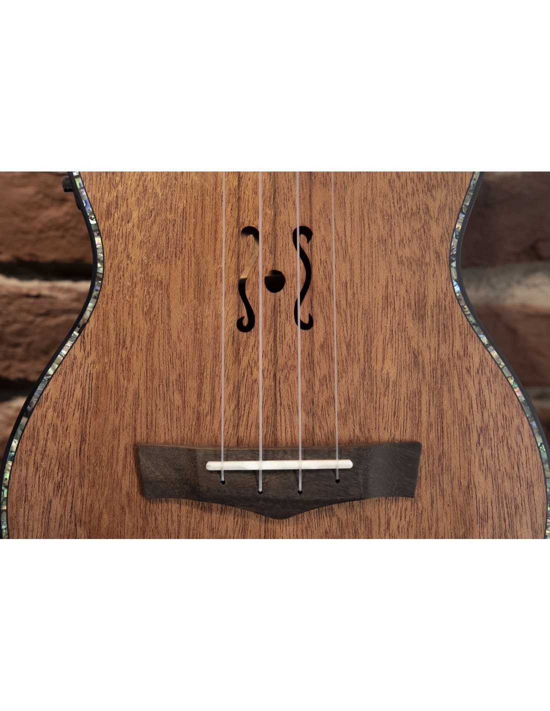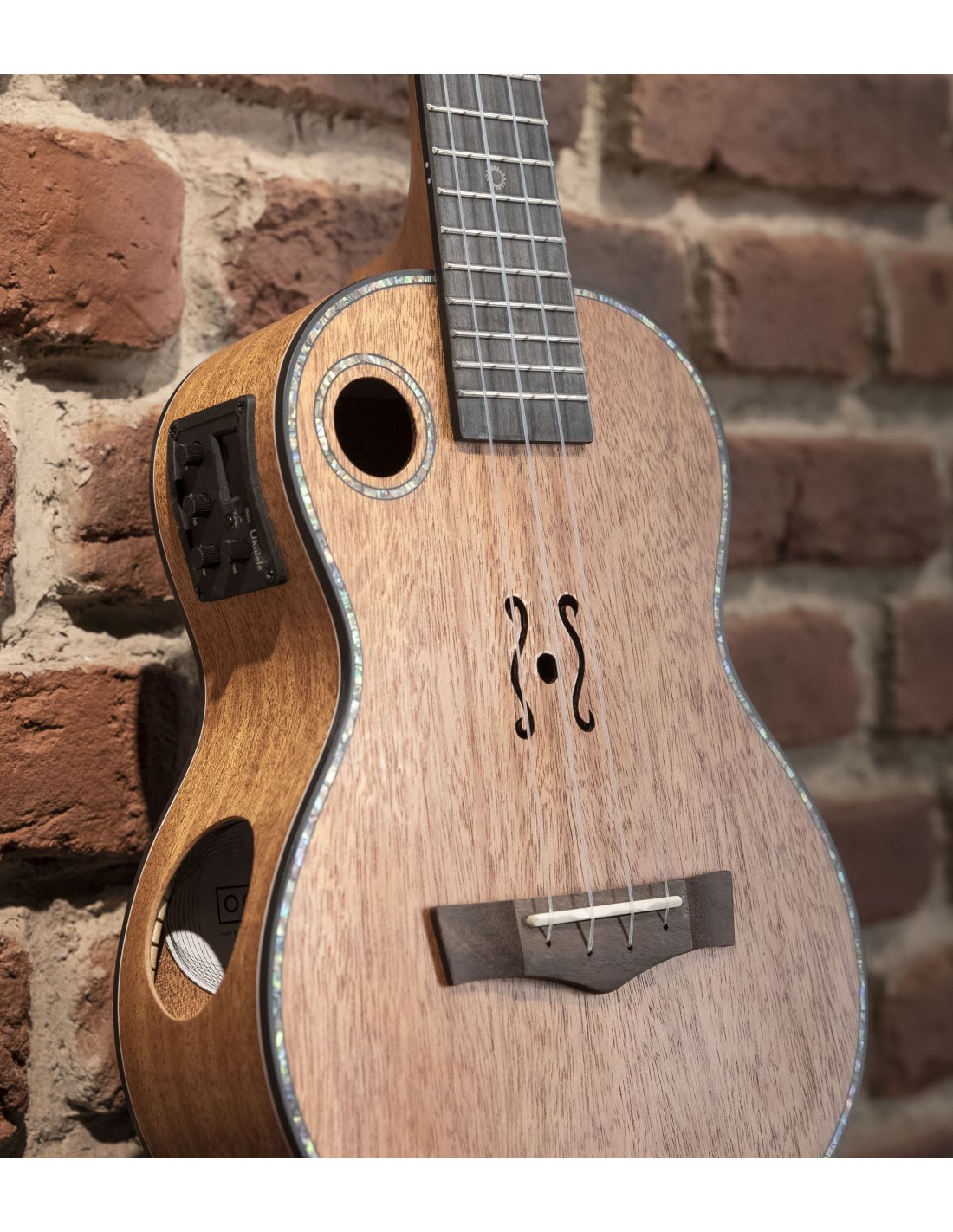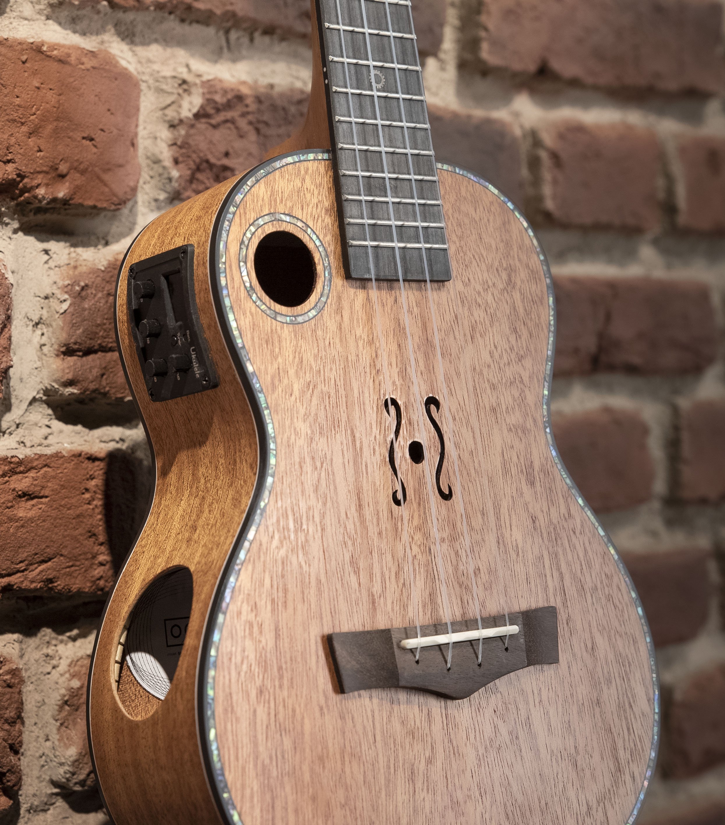 Ukulele-Konzert elektrifiziert. Alles massiv. Decke, Boden und Zargen aus Mahagoni. Hals aus Mahagoni mit Griffbrett aus Rosenholz-Verbundmaterial. Korpus mit Binding. 2 Schalllöcher für maximale Klangprojektion. Vorverstärker und Stimmgerät. Matt natürliche Oberfläche.
