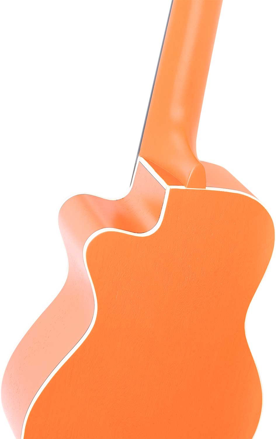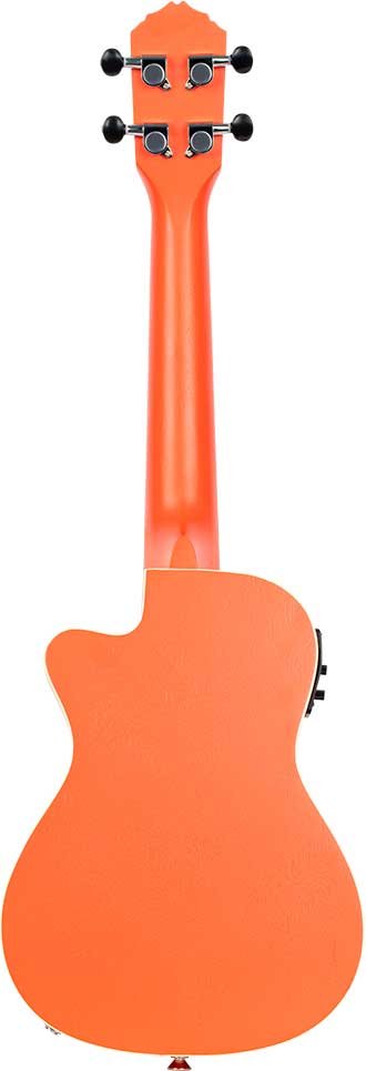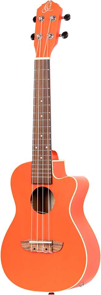 Ukulele-Konzert elektrifiziert Cutaway. Preamp Ortega MagusUke. Farbe Halloween-Kürbis