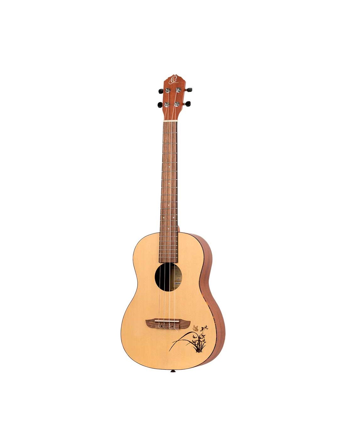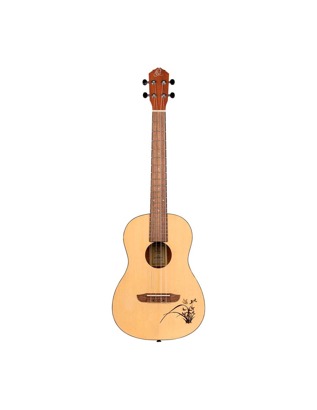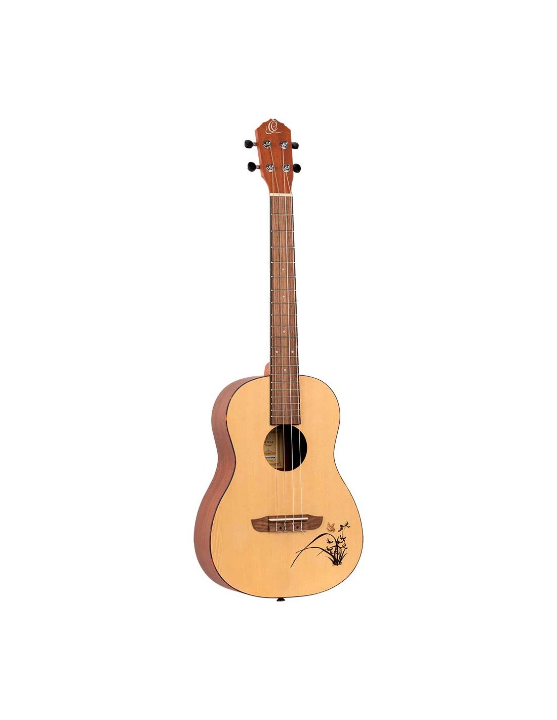 Bariton-Ukulele. Decke aus Fichte, Zargen und Boden aus Sapele. Hals aus Mahagoni, Sonokelin-Griffbrett. Druckguss