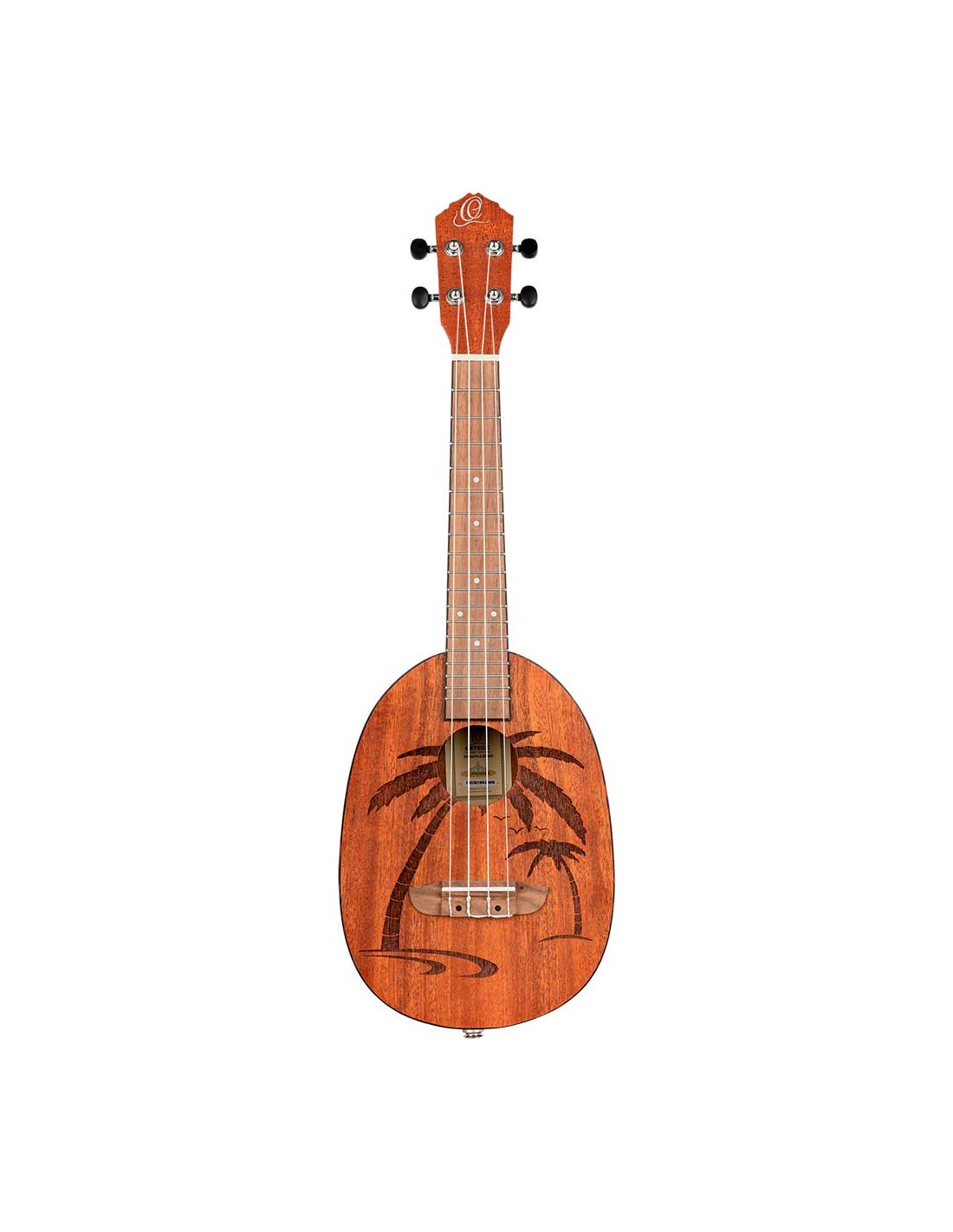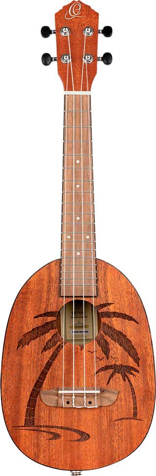 Ukulele-Konzert mit einem Korpus in Form einer Ananas. Decke, Zargen und Boden aus Mahagoni. Hals aus Mahagoni mit Griffbrett aus Sonokelin. Aquila-Saiten. Satinierte Oberfläche.