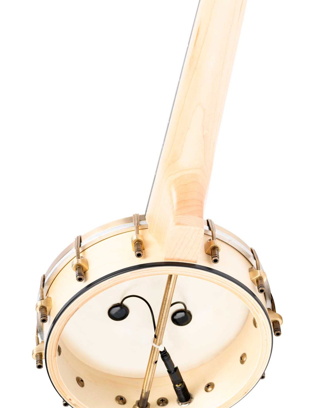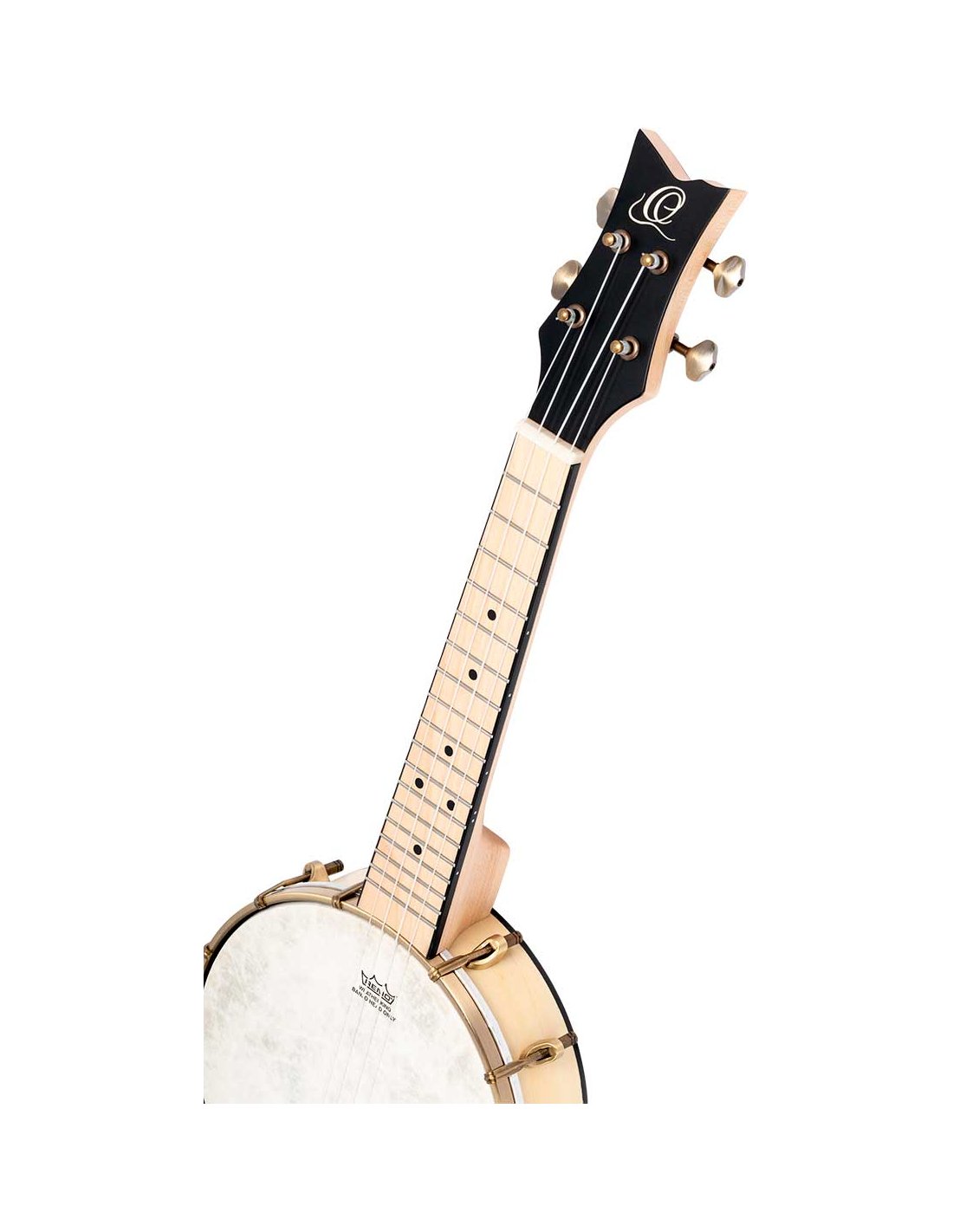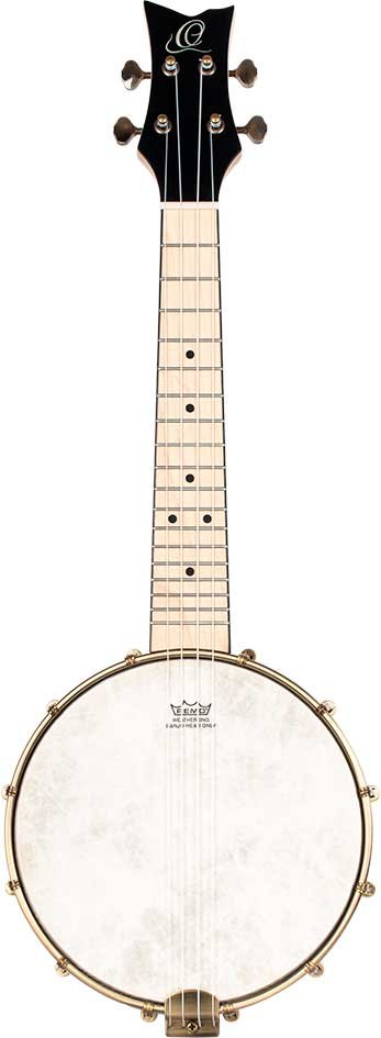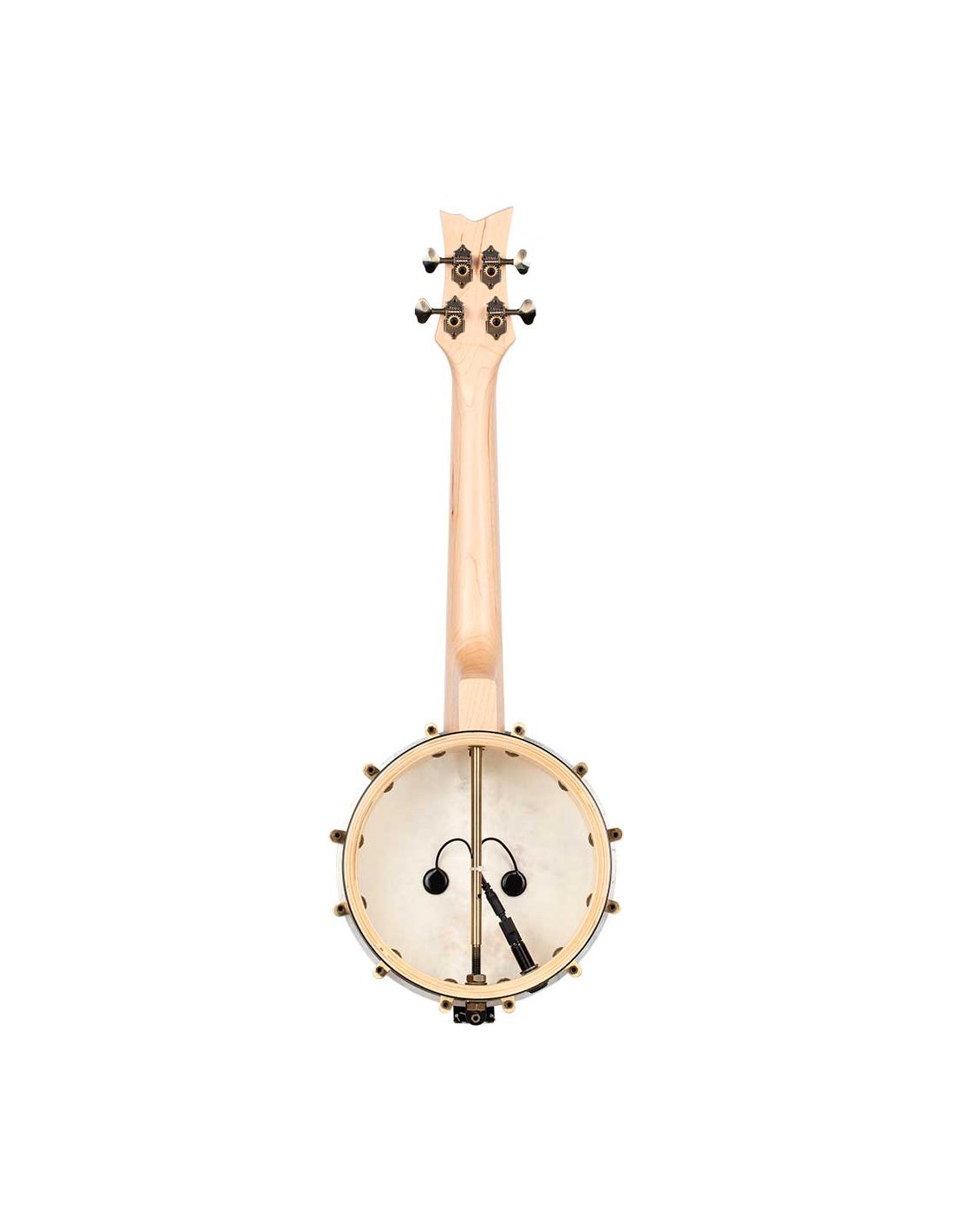 Banjo-Ukulele aber MANCINI. Konzertgröße. Ukulele mit Banjo-Korpus, die den Klang beider Instrumente mischt. Hergestellt aus Ahorn, mit Messing-Hardware, natürlicher Oberfläche und offenem Rücken.