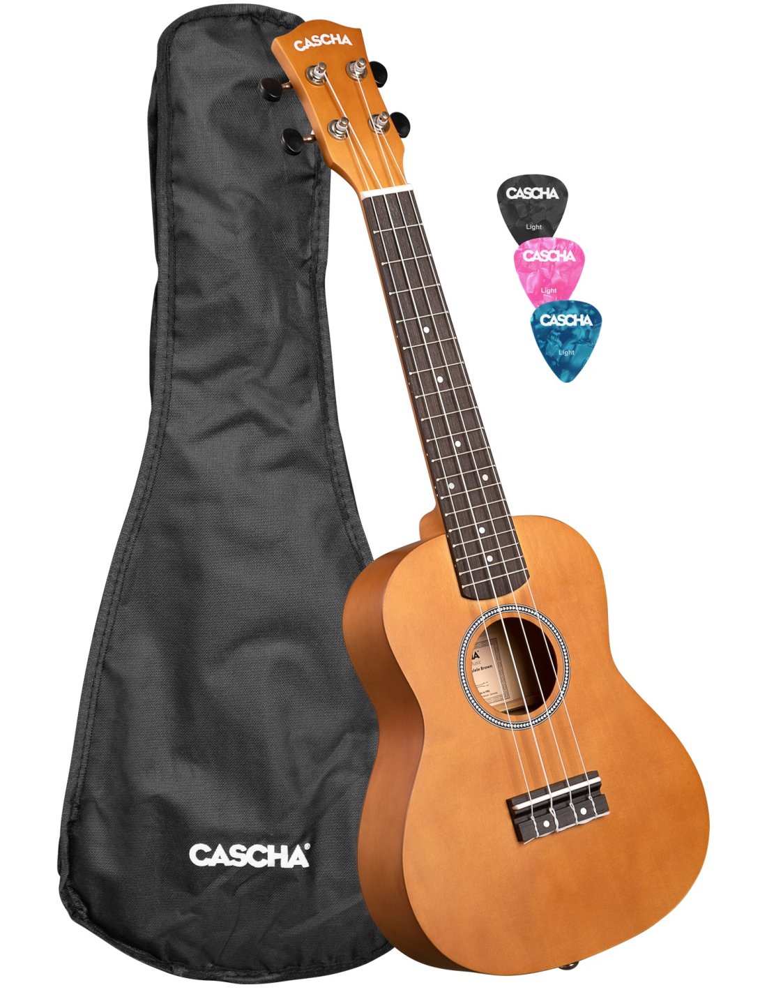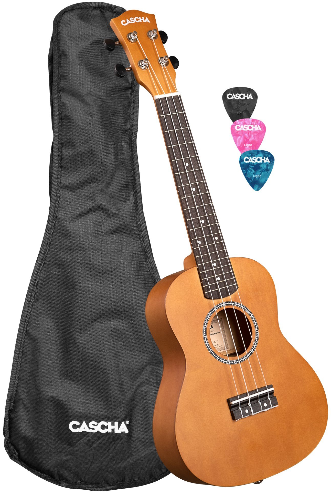 CASCHA CUC100 LINDEN BROWN ist ein Konzert-Ukulele aus Lindenholz mit präzisen Druckgussmechaniken, Griffbrett und Steg aus WPC, vorinstallierten Aquila-Nylon-Saiten, 3 Plektren und einer Transporttasche inklusive.