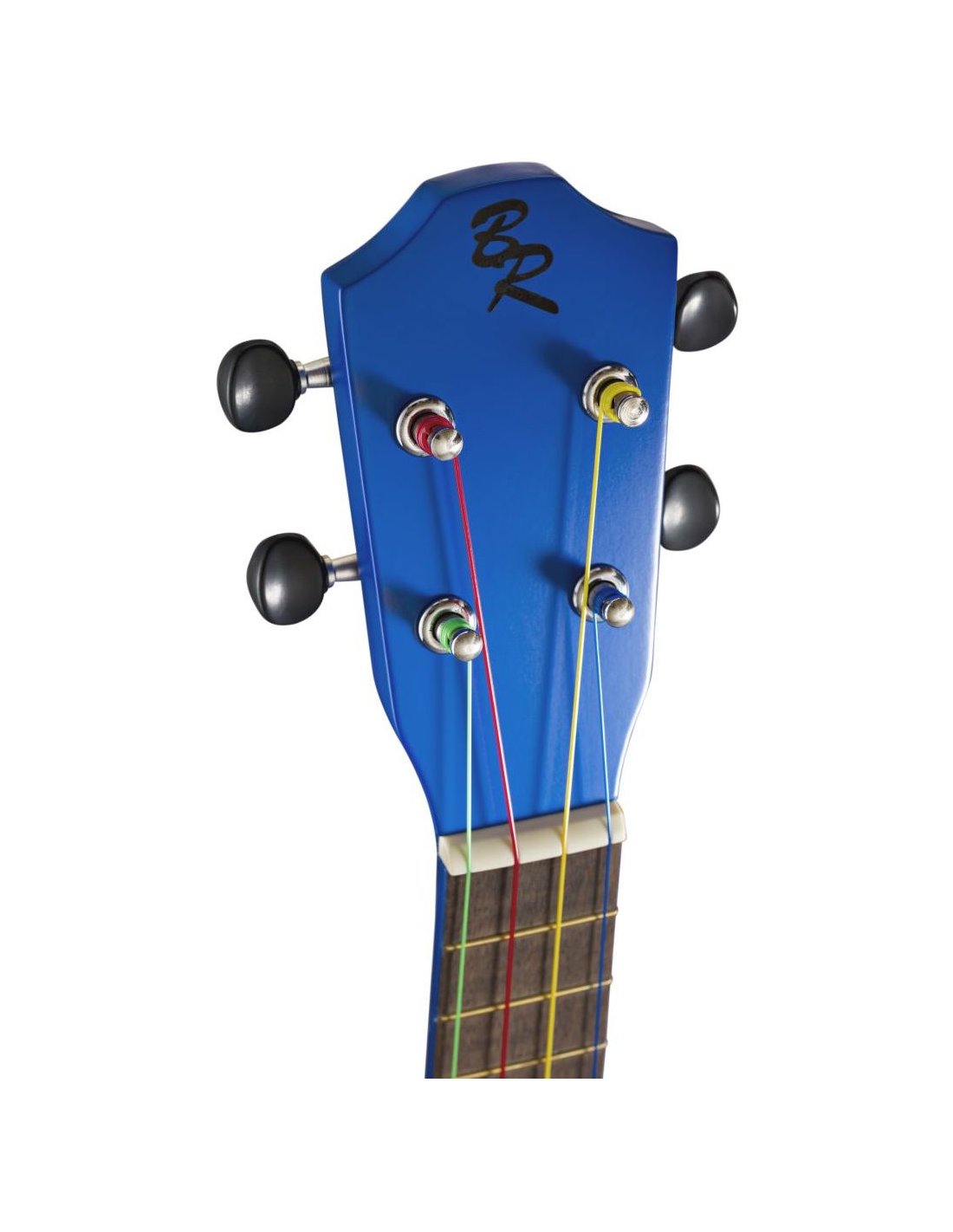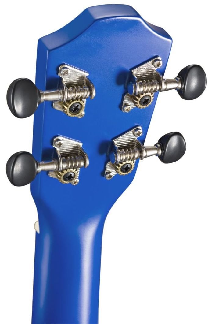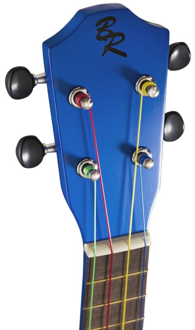 BATON ROUGE UR1-S BLAUER UKULELE SOPRANO ist ein Ukulele im Soprano-Format mit einem Korpus aus Lindenholz, einem Hals aus Okoume, einem Griffbrett mit 12 Bünden und einer Brücke aus Walnuss, offenen Mechaniken im Gitarrenstil mit schwarzen Knöpfen, einer Mensur von 340 mm, einem Sattel von 35 mm, vorinstallierten Aquila-Saiten in Boomwhackers-Farben: G = grün, C = rot, E = gelb, A = blau