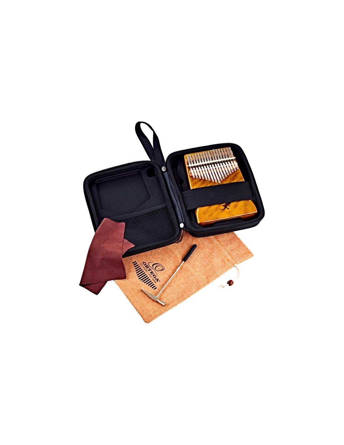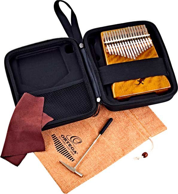 'OKB3 Kalimba im afrikanischen Stil aus massivem Holz. Mit 17 Tönen, die in der C-Dur-Skala gestimmt sind. Hergestellt aus goldenem Phoebe-Holz mit glänzender Oberfläche. Vorderer Schallauslass, der die Vibrationen während des Spiels an den Körper des Musikers überträgt. Dekoratives Muster ''Eidechse'' auf dem Cover. Inklusive Deluxe-Tasche, Staubbeutel, Stimmhammer und Reinigungstuch.'