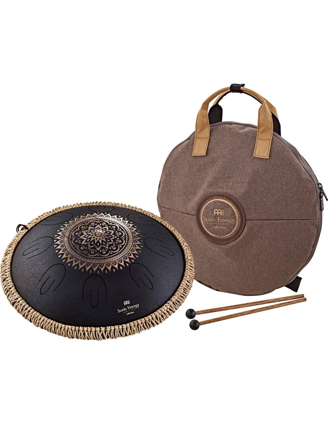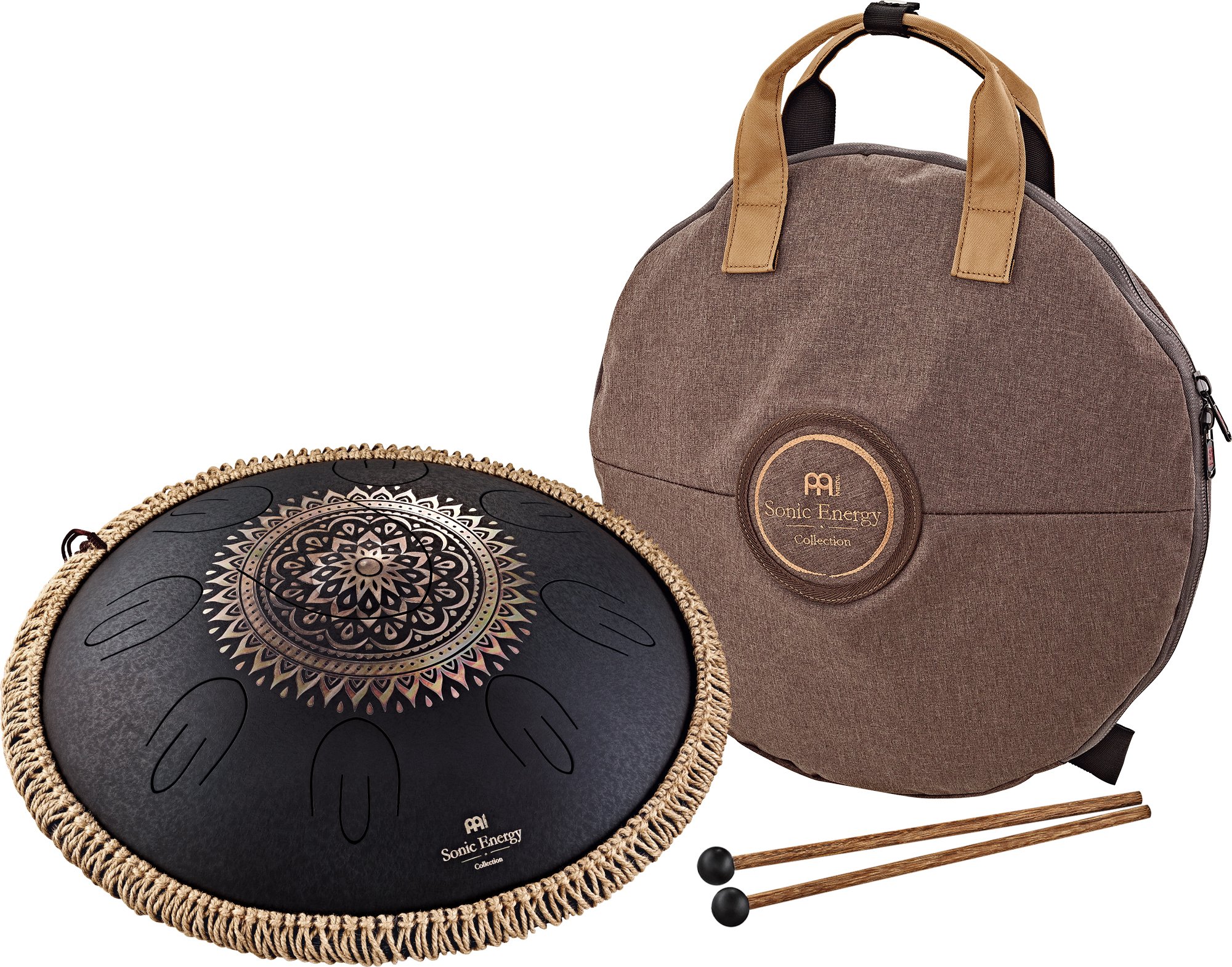 Die Meinl Energy Octave Steel Tongue Drum ist aus hochwertigem Edelstahl gefertigt. Sie hat einen Hauptton in der Mitte und acht Töne im Umfang. Diese acht Töne verfügen jeweils über zwei Zungen, mit einer anderen Oktave. Dies erzeugt einen außergewöhnlichen meditativen Klang, der dem eines Handpans ähnelt. Auf der Unterseite befindet sich ein Schallloch, das mit einem Silikonkorken verschlossen werden kann, um den Klang zu kontrollieren. Drei Silikonfüße verhindern das Verrutschen des Instruments. Du kannst die Steel Tongue Drum mit Schlägeln oder mit den Händen spielen, einfach auf eine flache Oberfläche oder auf die Beine legen. Die Meinl Energy Octave Steel Tongue Drum wird mit zwei Holzschlägeln mit Gummikopf und einer Tragetasche mit Griff und Reißverschluss geliefert.
