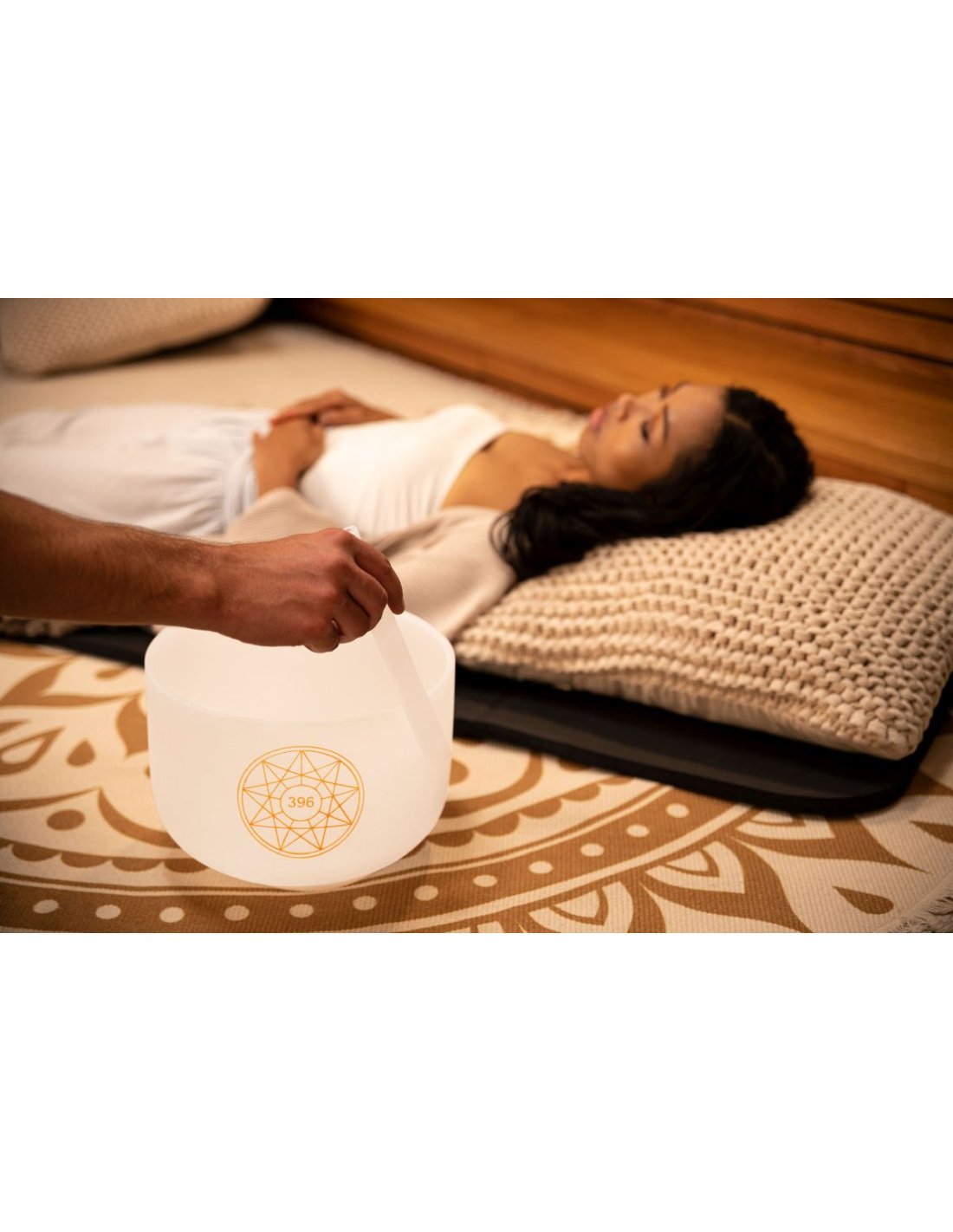 Die tibetischen Klangschalen von Meinl Sonic Energy Solfeggio Crystal werden unter Verwendung antiker Frequenzen hergestellt. Die Solfeggio-Frequenzen sind Klangvibrationen, von denen gesagt wird, dass sie eine heilende und gesundheitsfördernde Wirkung auf unseren Körper, Geist und Seele haben. Bereits in der Antike waren diese Frequenzen bekannt und wurden zur Heilung von physischen und psychologischen Krankheiten eingesetzt. Zum Beispiel verwendeten Mönche diese historischen Frequenzen in ihren Gregorianischen Chören und beobachteten eine heilende Wirkung bei der Übertragung der Vibrationen auf den Körper. Diese weißen, hochreinen Quarz-Klangschalen erzeugen mit ihrem Klang und ihrem Design eine sehr angenehme Aura. Ihr langanhaltender sphärischer Ton breitet sich aus, wenn die tibetische Klangschale sanft angeschlagen oder gerieben wird, sodass die Energie in der gesamten Umgebung wahrgenommen werden kann. Alle Kristallklangschalen sind mit einem Silikonring ausgestattet, um mögliche Stöße zu vermeiden und die beste Resonanz zu gewährleisten. Du kannst die Kristallklangschalen für eine Vielzahl von Zwecken verwenden: Chakra-Heilung, Meditation, Klangtherapie, Yoga, Verbesserung des Fengshui deines Hauses, Regulierung deines emotionalen Zustands oder zur Dekoration. Frequenz: Ut 396 Hz trägt zur Befreiung von Schuld und Angst bei und verwandelt Traurigkeit in Freude. Chakra: Wurzelchakra