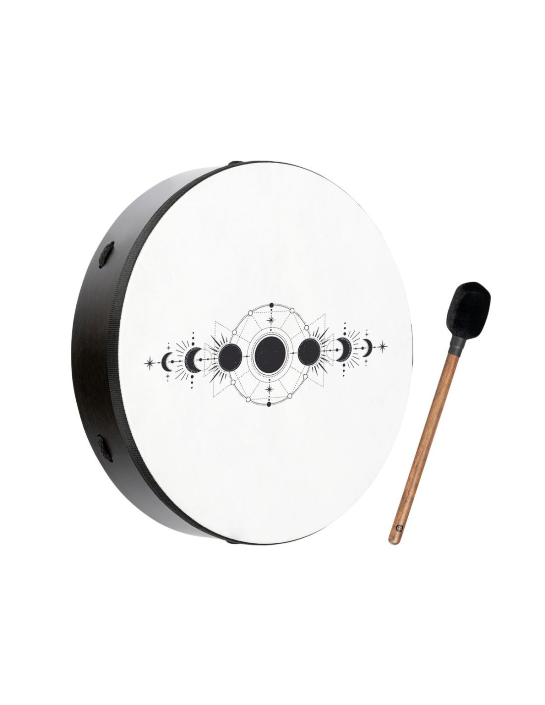Die rituellen Trommeln Meinl Sonic Energy garantieren eine bemerkenswerte Resonanz, die die Sinne während der Klangbäder oder musikalischen Sitzungen einbezieht. Die angeborene Wärme und der tiefe Klangreichtum verwandeln jeden Schlag in ein hypnotisches Erlebnis, das von rhythmischen Grooves bis hin zu herzähnlichen Beats reicht. Entfessle deine Kreativität und forme deine einzigartigen Rhythmen mit dem mitgelieferten Schlägel, während du das fesselnde Potenzial dieser Trommeln erkundest. Kreuzband für einen perfekten Halt, tiefe und warme Töne, perfekt für Klangbad-Sitzungen, Symbol der Mondphasen, vegan. Abmessungen 16'' x 3,5'', 40,6 cm x 8,9 cm SE2024