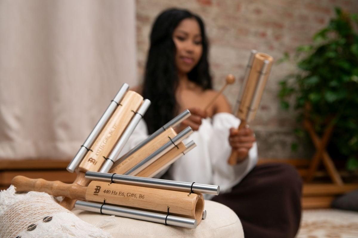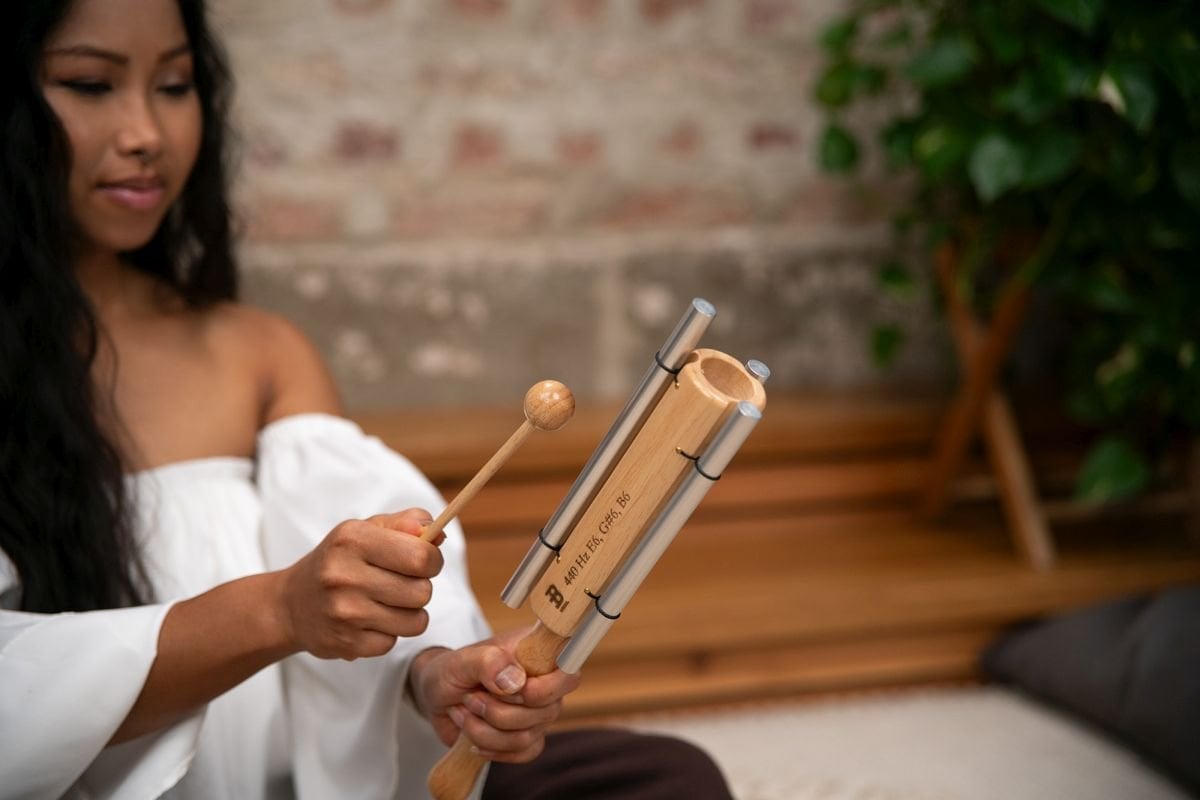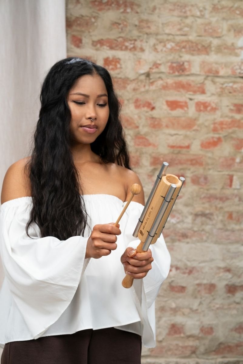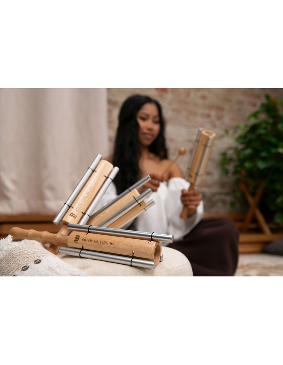 'I Three Tone Energy Chimes sind dafür konzipiert, deine Klangbad-Sitzungen oder musikalischen Reisen zu verbessern. Ihre Klänge erzeugen eine Symphonie der Ruhe dank der entspannenden Töne. Ideal sowohl für Anfänger als auch für erfahrene Profis, zeichnen sich die Three Tone Energy Chimes durch einen ergonomischen Holzgriff aus, der einen sehr komfortablen Halt gewährleistet. Der Holzschlägel ist enthalten. Abmessungen 13,39'' x 2,2'', 34cm x 5,6cm SE2024'