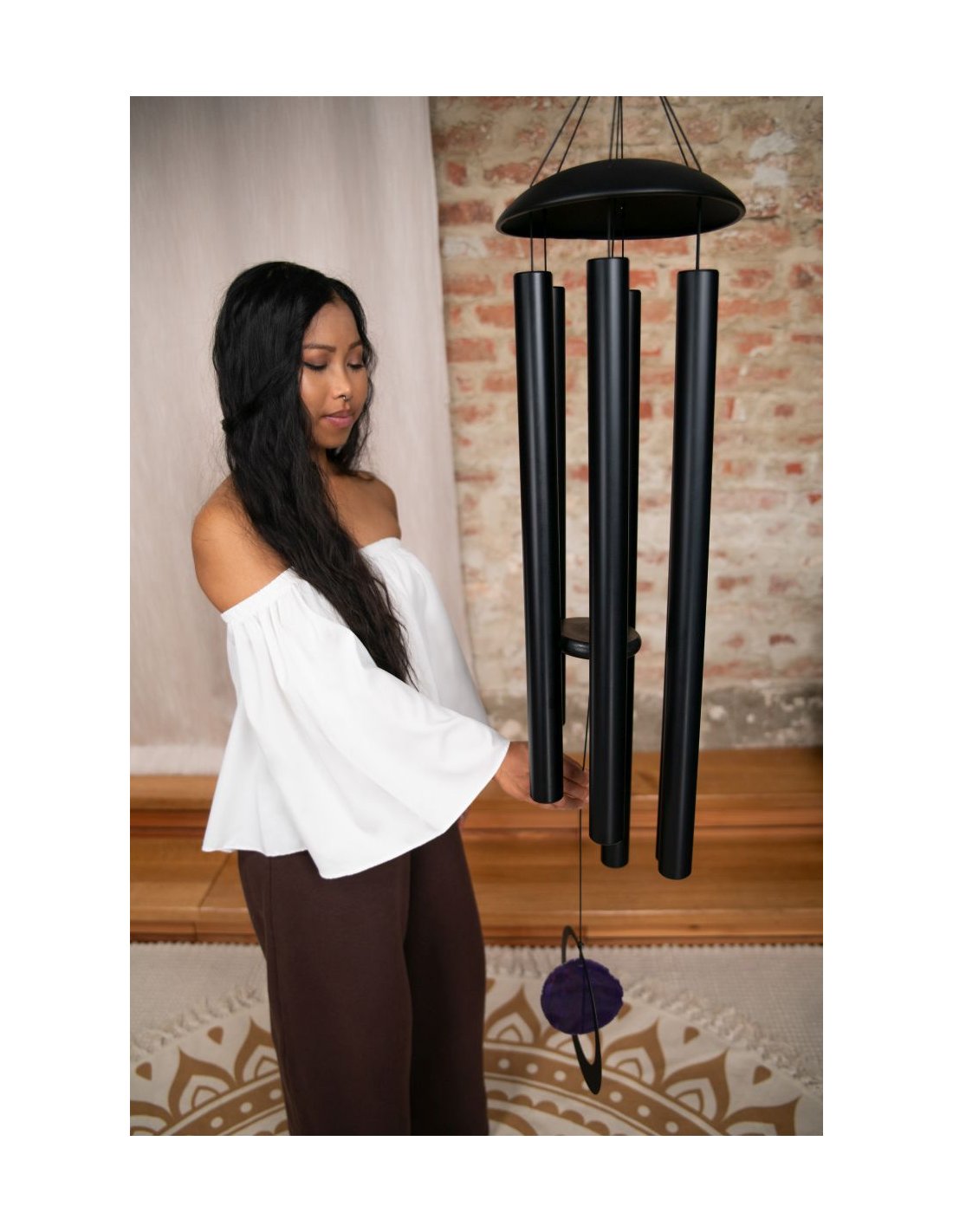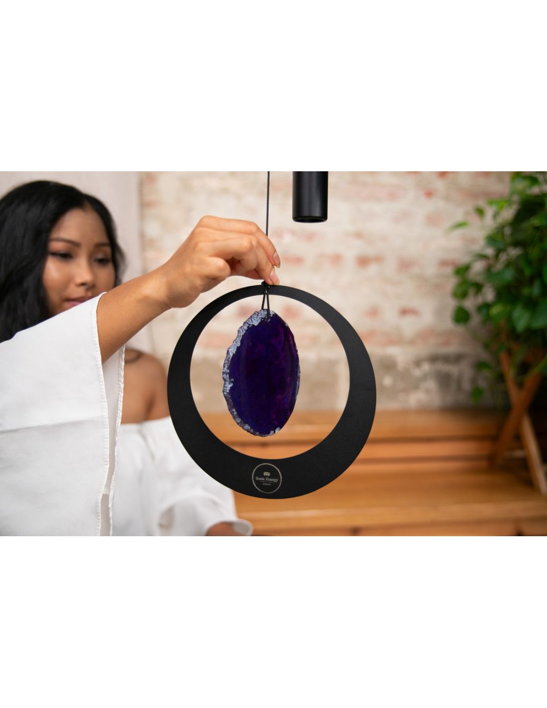 Die Agate Meditation Chimes Meinl Sonic Energy sind hervorragend für Meditation, Entspannung, therapeutische Anwendungen oder auch zur Dekoration deines Gartens und deines Hauses geeignet. Ihr magischer und tiefer Klang erfüllt die gesamte Umgebung und lädt dich in eine traumhafte Welt ein. Diese Chimes zeichnen sich durch eine besonders gute Resonanz und einen langen Nachhall aus. Sie sind auf eine Skala von A4 bei 432 Hz gestimmt. Genieße den __klaren und fröhlichen Klang. Ein dekorativer Achatstein am Ende des Schnurs vervollständigt diese wunderschönen Chimes. Ihre heilenden Energien sollen dir helfen, Frieden und Ruhe zu finden, indem sie Blockaden in deiner Aura beseitigen, die dich daran hindern, die Antworten zu sehen. Da es sich um einen natürlichen Achatstein handelt, können Form und Farbe leicht variieren. Du kannst die Meditation Chime dank eines praktischen Aluminiumrings aufhängen. Überprüfe den Klang, indem du das Kabel sanft zur Seite neigst, um die Glocken zu läuten. Mit einer verstellbaren Klammer unter dem Pendel in der Mitte kannst du die Anzahl der Schläge variieren (je höher das Pendel, desto weniger Schläge) oder es vollständig stoppen (indem du das Pendel nach oben positionierst). Die Meditation Chimes Meinl Sonic Energy sind aus korrosionsbeständigem Material (Aluminium) gefertigt und haben eine UV- und wetterfeste Oberfläche. Bitte beachte jedoch, dass auch diese Instrumente nach längerer Exposition gegenüber Witterungseinflüssen oxidieren können. Daher ist es ratsam, diese Instrumente von direkter Sonneneinstrahlung und Witterungseinflüssen fernzuhalten. Höhe: 50'' / 128cm SE2024