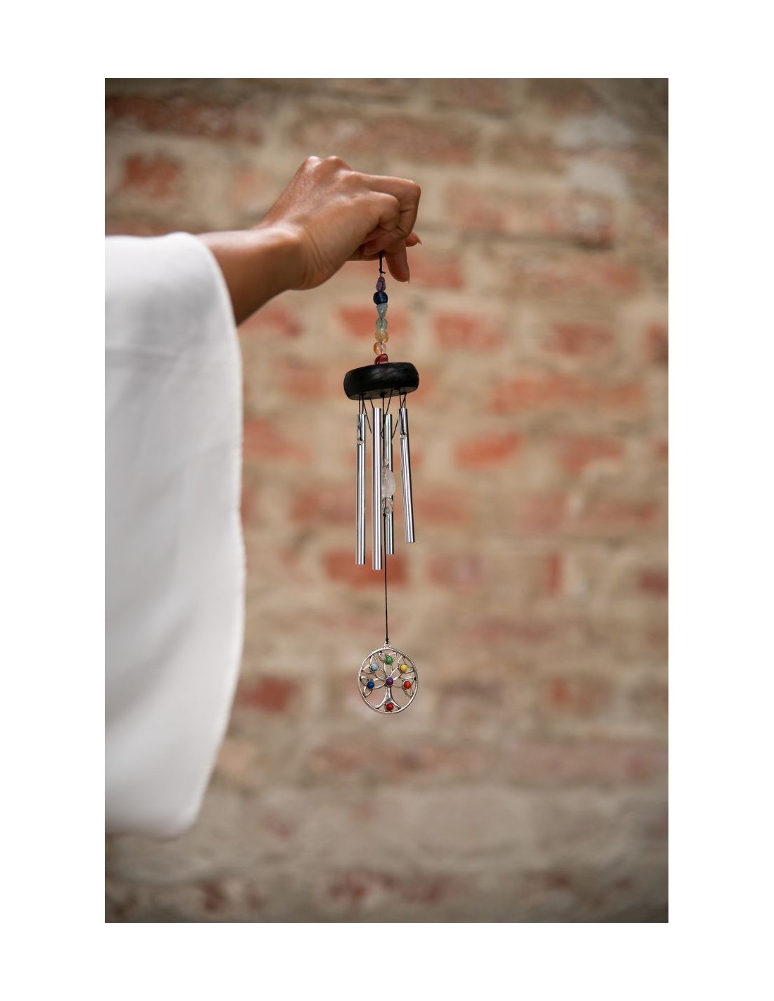 'Der Meinl Sonic Energy Mini Chakra Chime ist eine gute Geschenkidee für Klangheiler und Musikliebhaber. Es ist nicht nur ein schönes dekoratives Stück, sondern hat auch einen ansprechenden Klang. Tolle Geschenkidee, sieben Steine in den Farben der Chakren, Hamsa-Symbol. Größe 12'' / 30 cm SE2024'