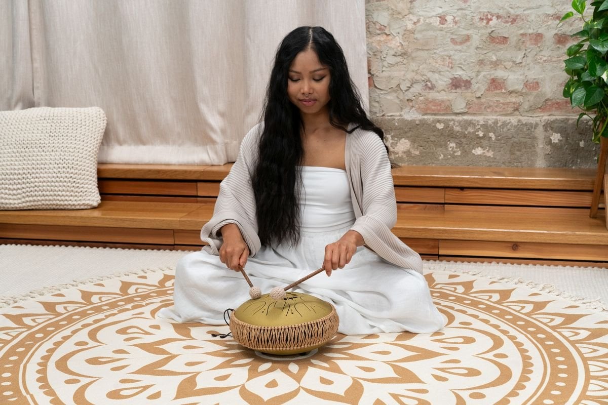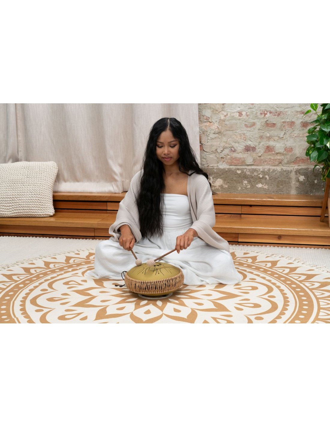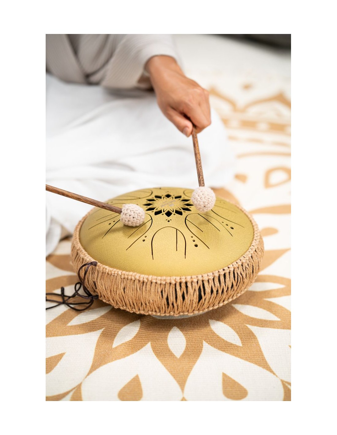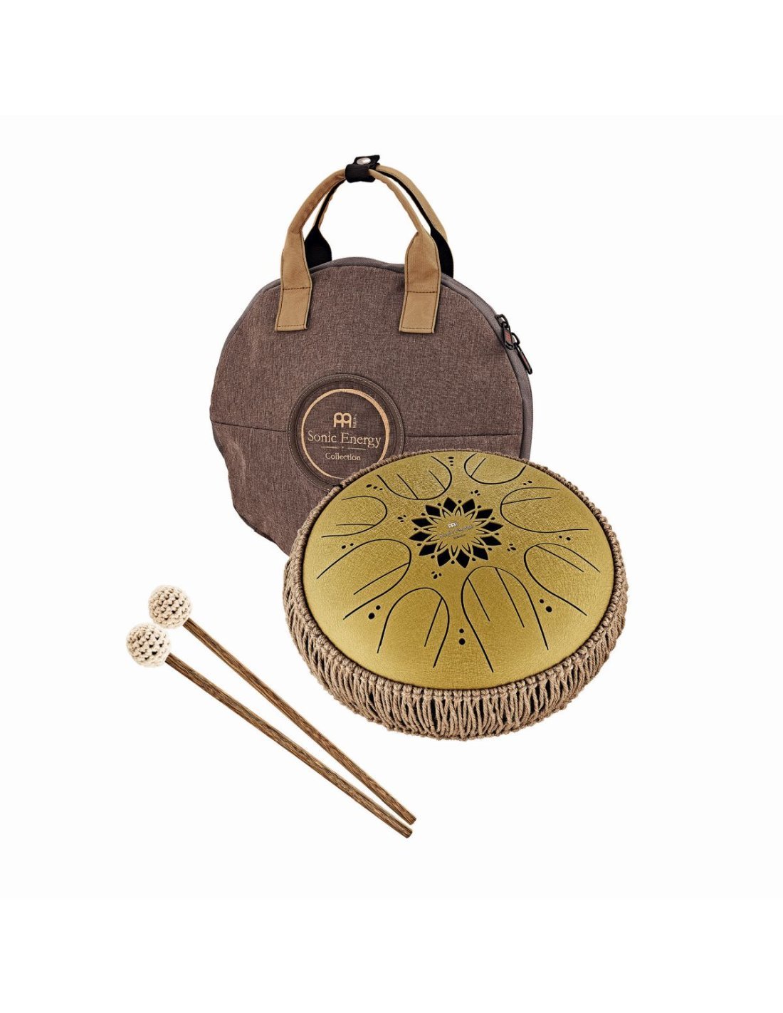 'Die Meinl Sonic Energy 10'' Medium Octave Steel Tongue Drums sind aus hochwertigem Edelstahl gefertigt. Die acht Zungen bieten Töne in zwei Oktaven. Dies erzeugt einen wunderbaren und meditativen Klang, der dem Ton eines Handpans ähnelt. Ein Loch an der Unterseite kann mit einem Silikondeckel verschlossen werden, um einen kompakteren und gleichmäßigeren Klang zu gewährleisten. Drei Silikonfüße an der Unterseite verhindern, dass die Trommel verrutscht. Die Meinl Sonic Energy 10'' Medium Octave Steel Tongue Drums können mit den Fingern oder mit zwei Schlägeln gespielt werden. Um zu spielen, lege sie einfach auf eine flache Oberfläche oder auf deine Beine. Die Trommel wird mit zwei Holzschlägeln mit Gummiköpfen, die in weichem Seil gewickelt sind, und einer schönen Tragetasche mit Reißverschluss und Griff geliefert.Eigenschaften:Etherealer KlangRutschfeste FüßeDekoratives Seil um den UmfangMaterial:Pulverbeschichteter Stahl10'' Oktave Steel Tongue Drum, C-Dur, 8 Noten, 432 Hz, Gold, inkl. Tasche SE2024'