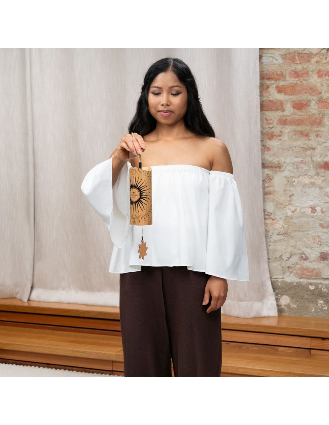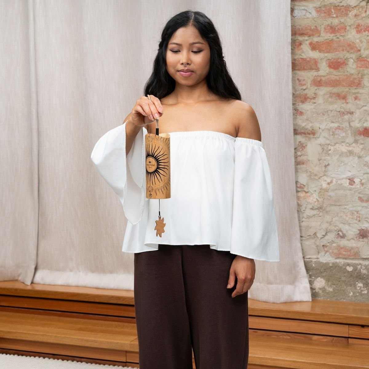 Die Cosmic Bamboo Chimes von Meinl Sonic Energy erzeugen sanfte und resonante Töne, die deinen Raum mit einem ruhigen Klang füllen. Ideal für Meditation, Klangbäder und Yoga. Oder schaffe einen entspannenden Raum zu Hause, um nachzudenken. Halte das Kabel und drehe sanft die Glocke, um sie wieder zu aktivieren. Im Inneren befindet sich ein Pendel und eine Gruppe von Metallstiften, die auf spezifische Töne gestimmt sind. Ändere den Ton ganz einfach, indem du zwischen den beiden Pendeln wechselst: Acryl (hart) und Holz (weich). Führe das Ende des Pendelverschlusses durch die Unterseite der Glocken. Befestige die Schnalle am Haken des Holzträgers. Ziehe das geflochtene Kabel gerade und ziehe es nach oben, um die Glocken erklingen zu lassen. Erhältlich in vier Einstellungen, die an die Tageszeit angepasst sind: Aurora (Morgen), Sonne (Tag), Mond (Nachmittag) und Stern (Nacht). Kombiniere zwei oder mehr, um Kontrast in der Stimmung zu erzeugen. Jede Glocke ist mit zwei zusätzlichen Ersatzpendeln ausgestattet (Acryl, Holz). Sanfte und resonante Töne, Ideal für Meditation, Klangbäder und Yoga, Abgestimmt auf die Tageszeit, Handgelenkband für einfache Befestigung. Größe 2,6''/6,5 cm Durchmesser, 17''/43 cm Höhe SE2024