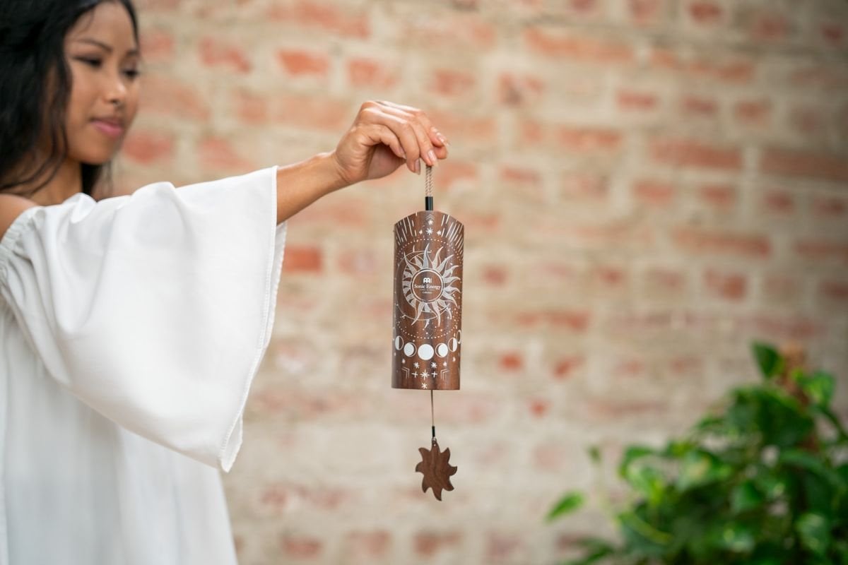 Die Cosmic Bamboo Chimes von Meinl Sonic Energy erzeugen sanfte und resonante Töne, die deinen Raum mit einem ruhigen Klang füllen. Ideal für Meditation, Klangbäder und Yoga. Oder schaffe einen entspannenden Raum zu Hause, um nachzudenken. Halte das Kabel und drehe sanft die Glocke, um sie wieder zu aktivieren. Im Inneren befindet sich ein Pendel und eine Gruppe von Metallstiften, die auf spezifische Töne gestimmt sind. Ändere den Ton ganz einfach, indem du zwischen den beiden Pendeln wechselst: Acryl (hart) und Holz (weich). Führe das Ende des Pendelverschlusses durch die Unterseite der Glocken. Befestige die Schnalle am Haken des Holzträgers. Ziehe das geflochtene Kabel gerade und ziehe es nach oben, um die Glocken erklingen zu lassen. Erhältlich in vier Einstellungen, die an die Tageszeit angepasst sind: Aurora (Morgen), Sonne (Tag), Mond (Nachmittag) und Stern (Nacht). Kombiniere zwei oder mehr, um Kontrast in der Stimmung zu erzeugen. Jede Glocke ist mit zwei zusätzlichen Ersatzpendeln ausgestattet (Acryl, Holz). Sanfte und resonante Töne, Ideal für Meditation, Klangbäder und Yoga, Abgestimmt auf die Tageszeit, Handgelenkband für einfache Befestigung. Größe 2,6''/6,5 cm Durchmesser, 17''/43 cm Höhe