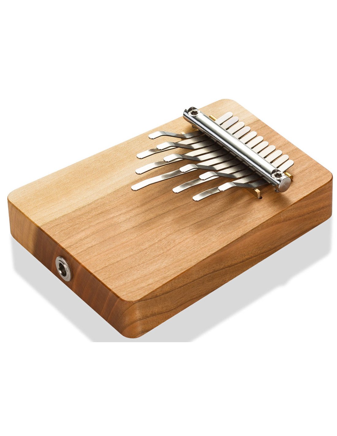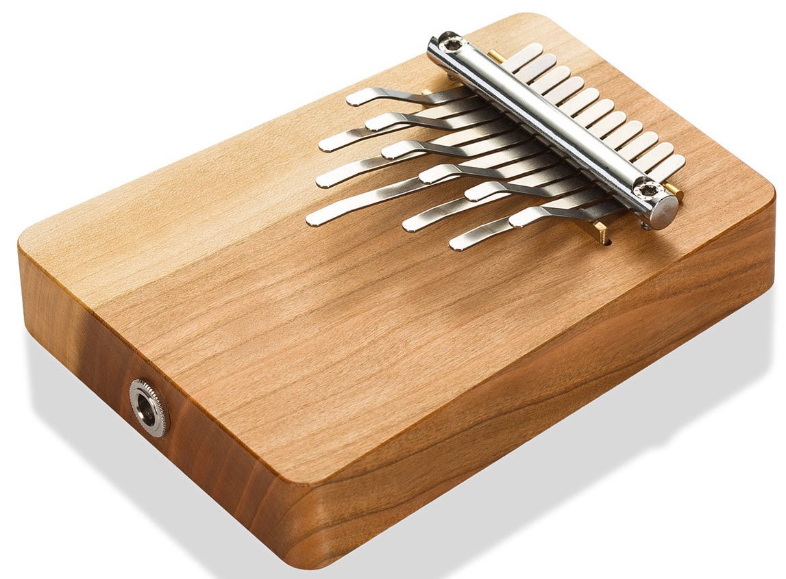 HOKEMA B11 ELECTRO KALIMBA MELODY ELEKTRO SOL + 440HZ ist eine elektrifizierte Kalimba mit 11 Zungen in G-Dur bei 440Hz, hergestellt aus massivem amerikanischem Kirschholz mit integriertem piezoelektrischem Pickup und einer 6,35 mm Klinkenbuchse