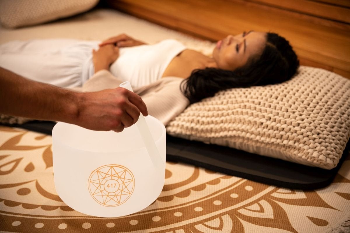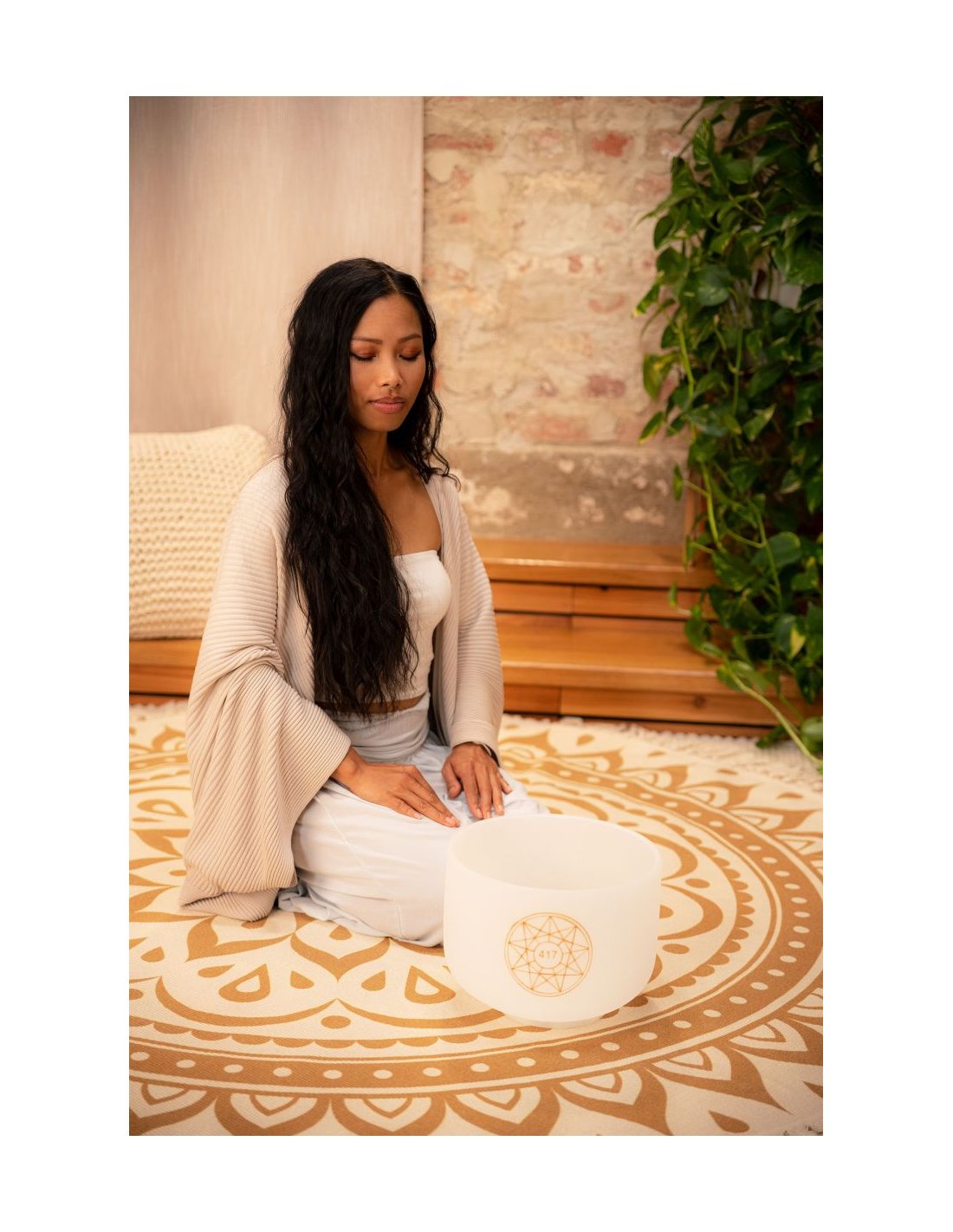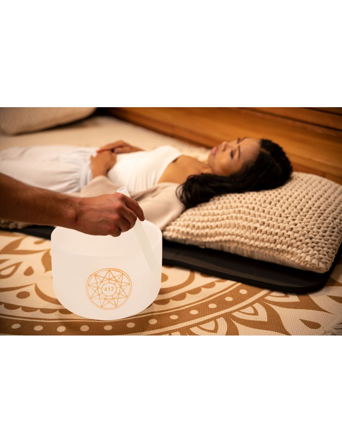 Die tibetischen Klangschalen Meinl Sonic Energy Solfeggio Crystal werden unter Verwendung antiker Frequenzen hergestellt. Die Solfeggio-Frequenzen sind Klangvibrationen, von denen gesagt wird, dass sie eine heilende Wirkung auf unseren Körper, Geist und Seele haben. Bereits in der Antike waren diese Frequenzen bekannt und wurden zur Behandlung von physischen und psychologischen Krankheiten eingesetzt. Zum Beispiel verwendeten Mönche diese historischen Frequenzen in ihren Gregorianischen Chören und beobachteten eine heilende Wirkung bei der Übertragung der Vibrationen auf den Körper. Diese geschliffenen weißen Quarz-Klangschalen von hoher Reinheit erzeugen mit ihrem Klang und ihrem Design eine sehr angenehme Aura. Ihr langanhaltender sphärischer Ton breitet sich aus, wenn die tibetische Klangschale sanft angeschlagen oder gerieben wird, sodass die Energie in der gesamten Umgebung wahrgenommen werden kann. Alle Kristallklangschalen sind mit einem Silikonring ausgestattet, um mögliche Stöße zu vermeiden und die beste Resonanz zu gewährleisten. Du kannst die Kristallklangschalen für eine Vielzahl von Zwecken verwenden: Chakra-Heilung, Meditation, Klangtherapie, Yoga, Verbesserung des Fengshui deines Hauses, Regulierung deines emotionalen Zustands oder zur Dekoration. Frequenz: 417 Hz hilft, traumatische Erfahrungen zu überwinden und erleichtert den Wandel. Chakra: Sakralchakra