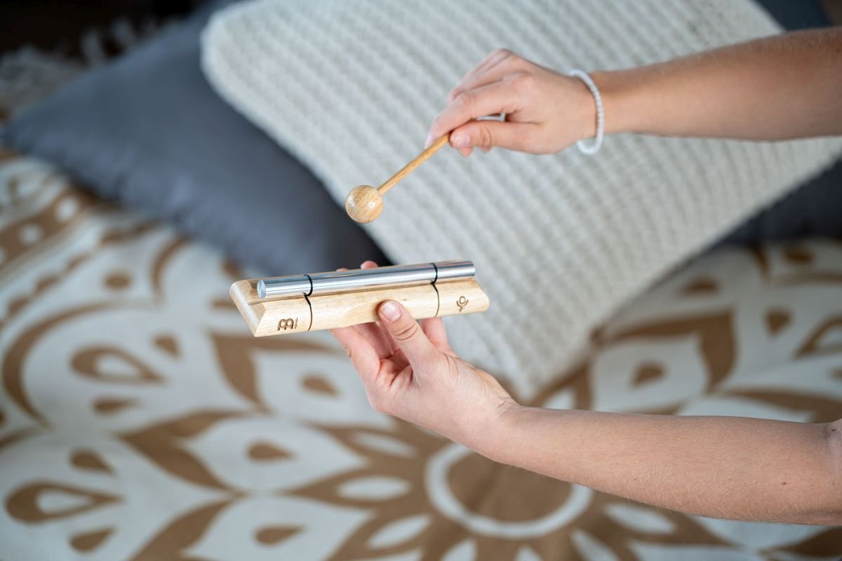 Ich Meinl Sonic Energy Planetary Tuned Energy Chimes werden unter Verwendung der Berechnungen von Hans Cousto (The Cosmic Octave) erstellt, um die Frequenzen der Sonne, des Mondes und der Planeten abzugleichen. Jede Chime ist gestimmt, um die entsprechende Frequenz des Himmelskörpers zu erzeugen. Hergestellt aus eloxierter Aluminiumlegierung in Silber für eine exakte Frequenz. Die dekorative Holzbasis ist mit einem eingravierten Logo und einem Stimmungsymbol veredelt, und jede Glocke wird mit einem Holzschlägel geliefert, der einen klaren und definierten Ton erzeugt, um deinen Raum (klein oder groß) mühelos mit entspannendem Klang zu füllen. Dieser Schlägel kann bequem auf der Holzbasis verstaut werden, indem er unter die Chime geschoben wird. Diese hochwertigen Energiechimes sind ideal für therapeutische und meditative Zwecke, können aber auch im Unterricht oder als akustisches Signal verwendet werden. Herstellerhinweis: Verwende die planetarischen Chimes auch in Kombination mit den entsprechenden planetarischen Stimmgabeln von Meinl Sonic Energy.Stimmung: A4/aÕ 440 Hz -> 140,64 Hz Inklusive HolzschlägelHandgefertigtes MeisterwerkPräzise StimmungPlanetarisches Logo und heiß eingeprägte Stimmung