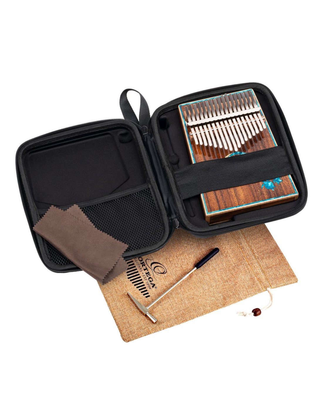 Kalimba akustisch, vollständig aus massivem Akazienholz gefertigt - JUBILÄUMS-SERIE - Einlagen von Meeresschildkröten, einschließlich des Gehäuses zum 30-jährigen Jubiläum. Die handgefertigten Kalimbas von Ortega kombinieren das Erbe ihrer afrikanischen Herkunft mit einem modernen Look. Sorgfältig ausgewählte und spektakulär aussehende Hölzer, das kristallklare Klangerlebnis fördert grenzenlose Kreativität und musikalischen Spaß.ORTEGA2024
