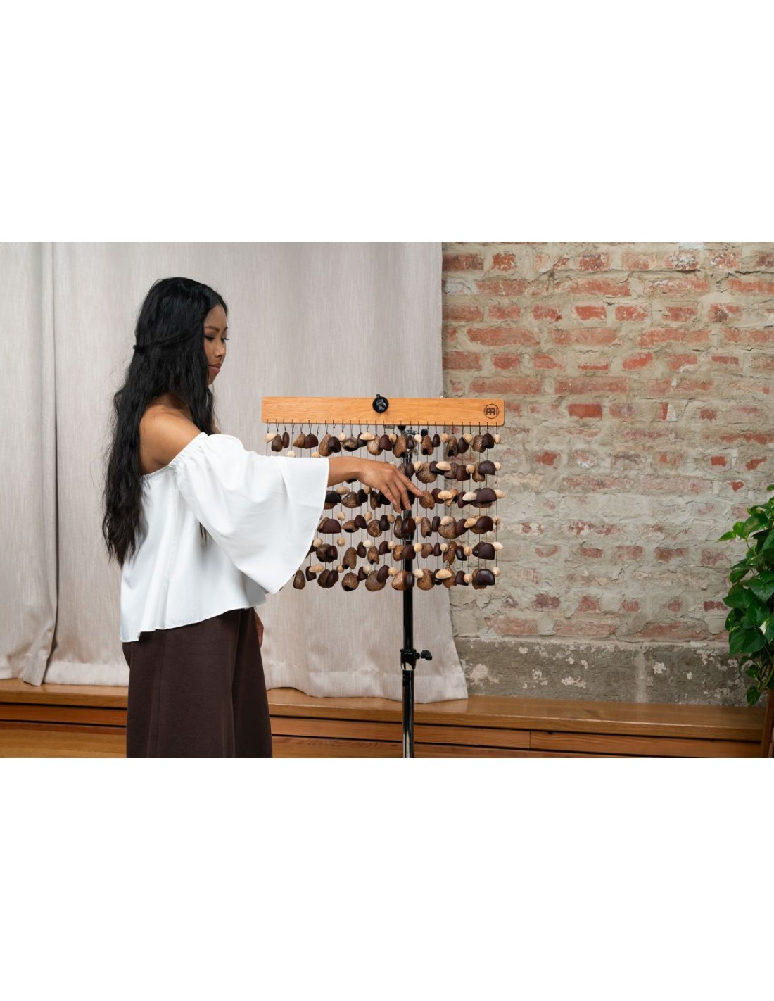'Die Walnussgüsse von Kenari, Bendo und Pangi, die an einem soliden Stück Mahagoni befestigt sind, schaffen ein einzigartiges und vielseitiges Instrument. Die Mischsamen-Carillons von Sonic Energy von Meinl klingen wie typische Klangfarben, bieten jedoch eine völlig andere Klangvielfalt. Durch das Mischen der verschiedenen Samen entsteht ein charakteristischer Klang, der sehr entspannend ist und an das Geräusch von fließendem Wasser erinnert. Mischung aus verschiedenen Trockenfrüchten, Entspannende Klangeigenschaften, Der Klang erinnert an fließendes Wasser, Kann an einem Ständer befestigt werden. Abmessungen 20,47'' x 16,14'', 52 cm x 41 cm SE2024'
