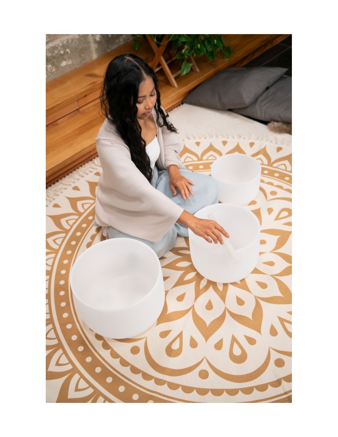 Die Meinl Sonic Energy Kristallglocken aus hochreinem Quarz schaffen mit ihrem Klang und Design eine sehr angenehme Atmosphäre. Der volle und langanhaltende Klang breitet sich aus, wenn die Glocke sanft angeschlagen, geklopft oder gerieben wird, sodass die Energie in der gesamten Umgebung wahrgenommen werden kann. Alle Kristallglocken enthalten einen Silikonring, um mögliche Stöße zu vermeiden und die beste Resonanz zu gewährleisten. Du kannst die Kristallglocken für eine Vielzahl von Zwecken verwenden: Chakra-Heilung, Meditation, Klangtherapie, Yoga, Verbesserung des Fengshui in deinem Zuhause, Regulierung deines emotionalen Zustands oder einfach nur zur Dekoration eines Raumes.Eigenschaften:Extrem lange ResonanzTiefer Klang in der 3. OktaveMaterial:Hochreiner QuarzDurchmesser: 9'' / 22 cm, 11'' / 28 cm, 13'' / 33 cm SE2024