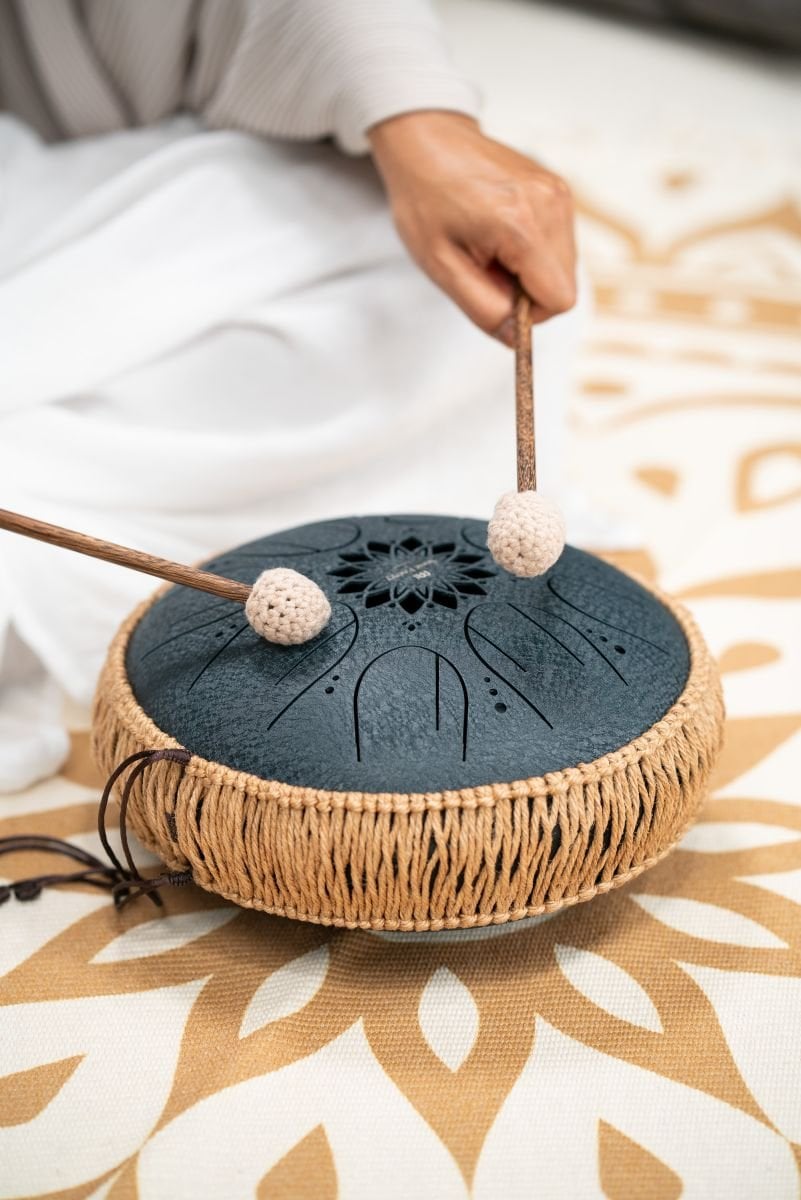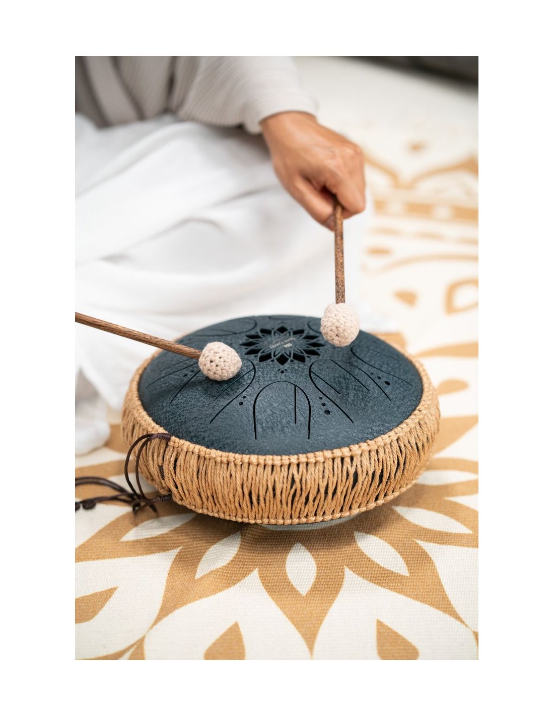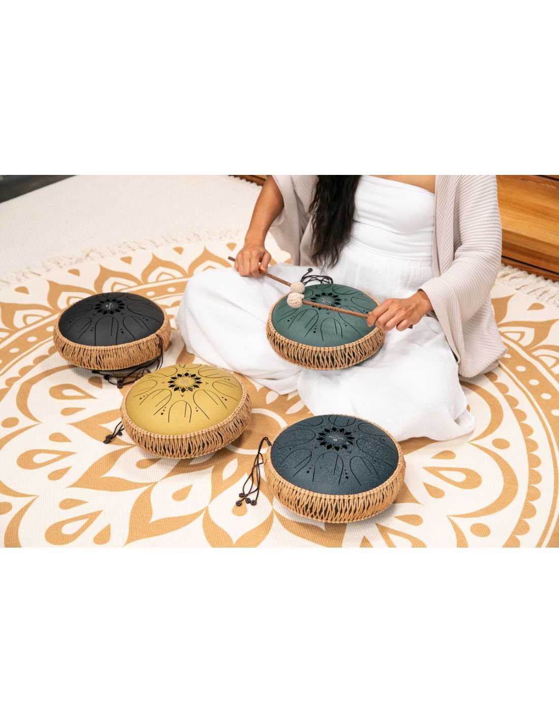 'I Meinl Sonic Energy 10Ó Medium Octave Steel Tongue Drum sind aus hochwertigem Edelstahl gefertigt. Die acht Zungen bieten Töne in zwei Oktaven. Dies erzeugt einen wunderbaren und meditativen Klang, ähnlich dem Ton eines Handpans. Ein Loch an der Unterseite kann mit einem Silikonkorken verschlossen werden, um einen kompakteren und gleichmäßigeren Klang zu gewährleisten. Drei Silikonfüße an der Unterseite verhindern, dass die Trommel verrutscht. Die Meinl Sonic Energy 10Ó Medium Octave Steel Tongue Drum kann mit den Fingern oder mit zwei Schlägeln gespielt werden. Um zu spielen, lege sie einfach auf eine flache Oberfläche oder auf deine Beine. Die Trommel wird mit zwei Holzschlägeln mit Gummiköpfen, die in weichem Seil gewickelt sind, und einer schönen Tragetasche mit Reißverschluss und Griff geliefert.Eigenschaften:Etherealer KlangRutschfeste FüßeDekoratives Seil um den UmfangMaterial:Pulverbeschichteter Stahl10'' Oktave Steel Tongue Drum, C-Moll, 8 Noten, 432 Hz, Marineblau SE2024'