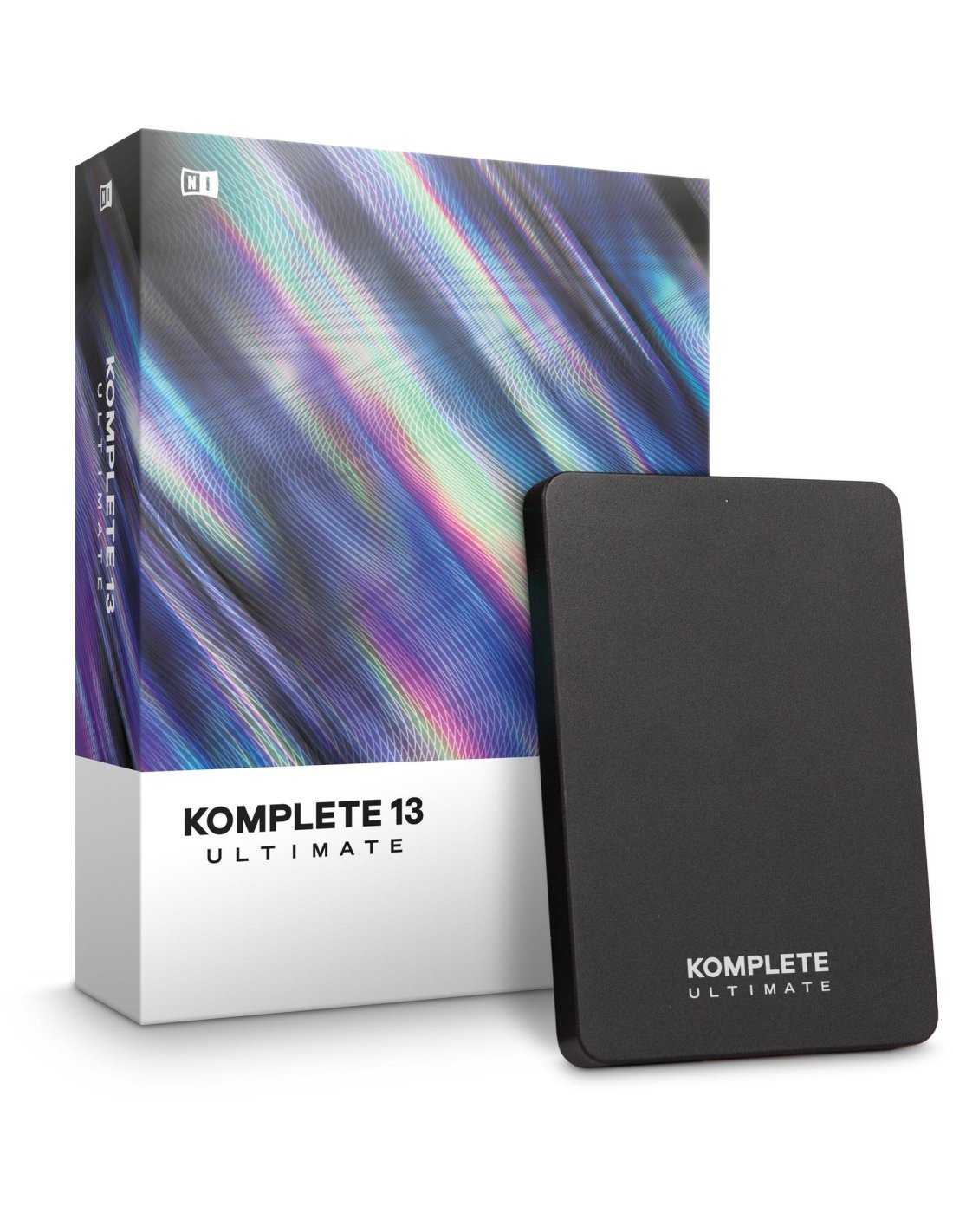 NATIVE INSTRUMENTS KOMPLETE 13 ULTIMATE. Paket mit Plug-in-Bibliotheken mit über 115 Software-Instrumenten, 65000 Klängen und 600 GB Inhalten, darunter: Kontakt 6, Massive X Synth, Session Guitarist, Symphony Series Collection, Reaktor 6, Battery 4, Guitar Rig 6 Pro. Enthält eine externe USB-Festplatte mit den Installationsdateien.
