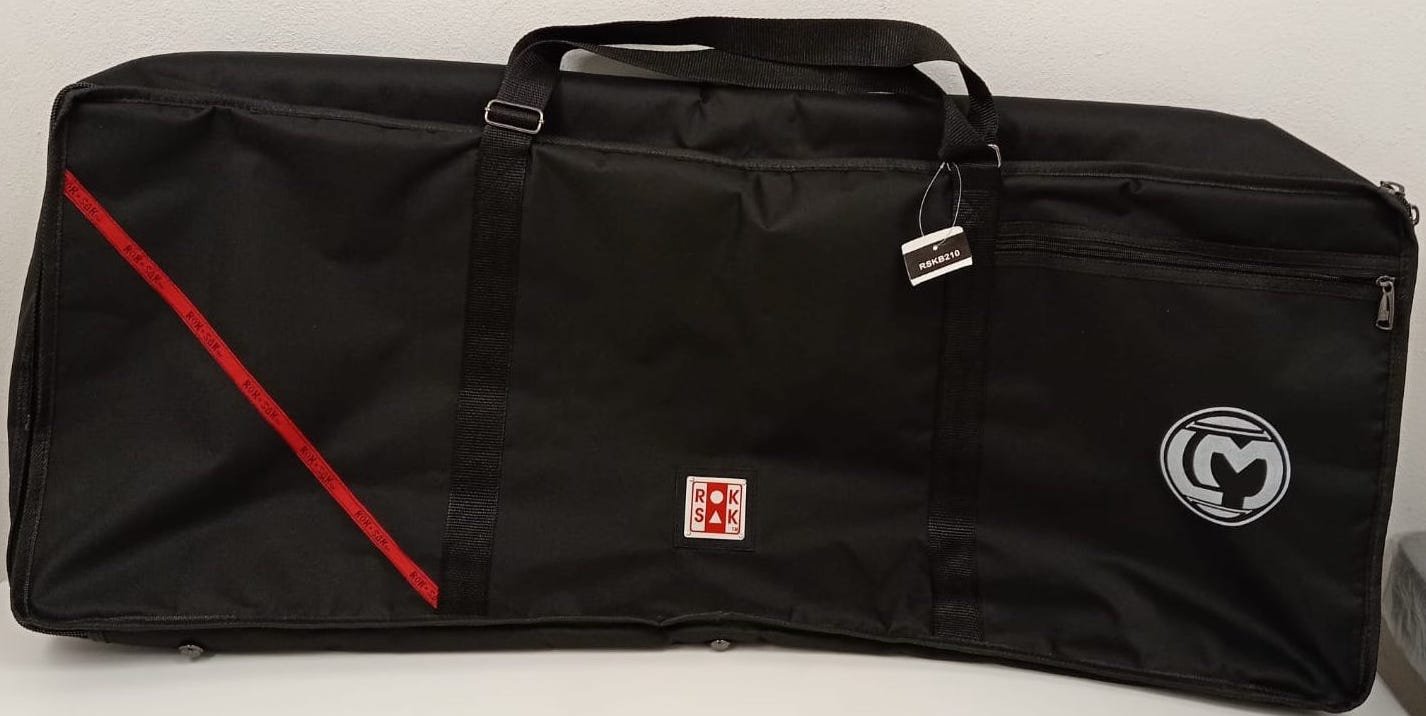 RCH RSKB-210 ist eine Keyboardtasche mit 12 mm dicker Schaumstoffpolsterung, Zubehörfach, gepolstertem Tragegriff, gepolsterter Schultergurt und Sicherheitsgurten zur Fixierung des Keyboards im Inneren.