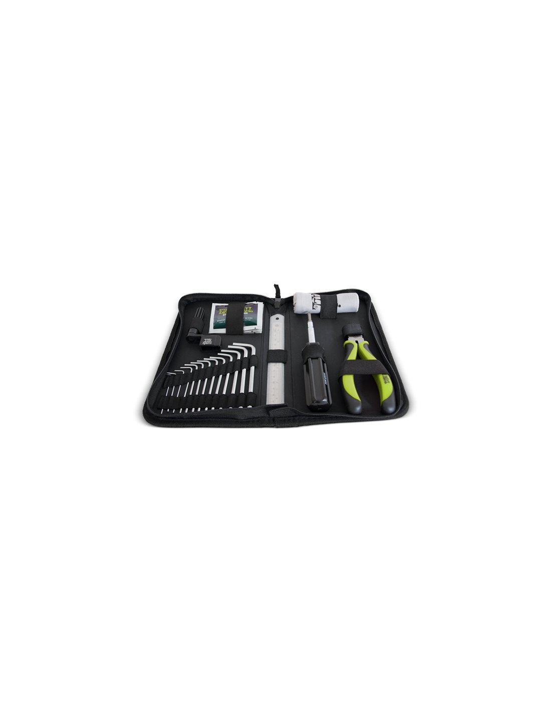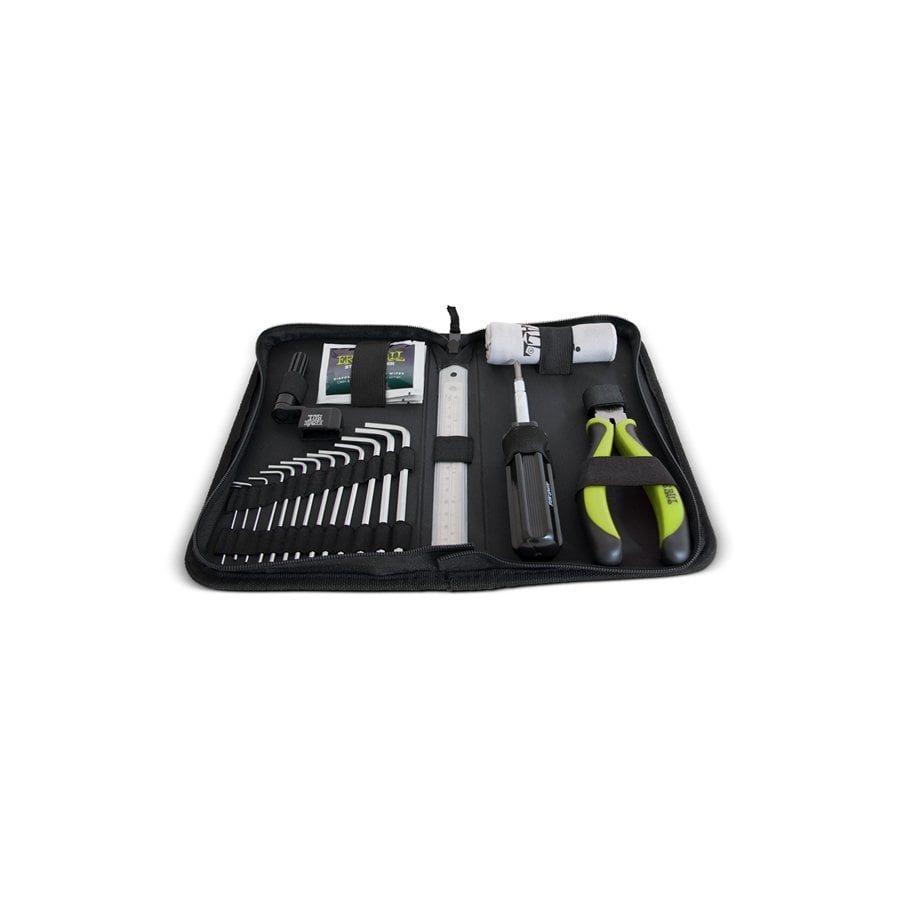 P04114 Musician's Tool Kit è Il kit completo di attrezzi Ernie Ball perfetto per pulire e mantenere il vostro strumento in condizioni perfette. Cambiare le corde, regolare l'intonazione, regolare e controllare l'altezza delle corde e molto altro ancora. Il kit include un Panno Lucidante in Microfibra, Wonder Wipe, Robusta Cesoia per Tagliare le Corde, Avvolgicorde, Cacciavite 6-in-1, Righello e un set di solide Brugole.