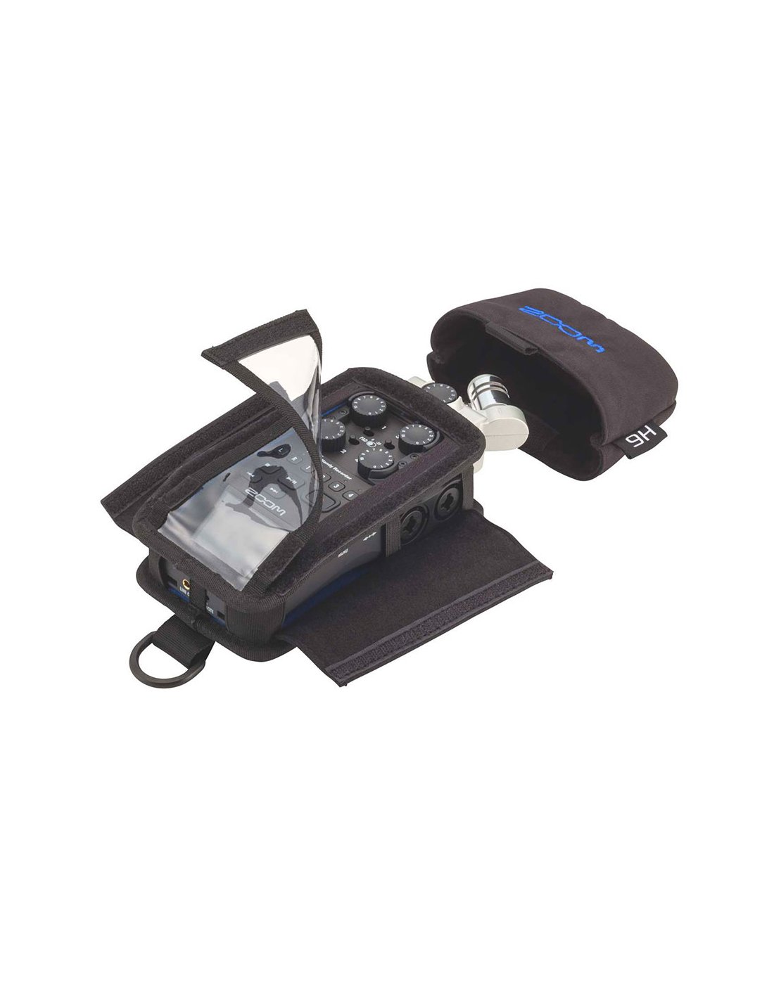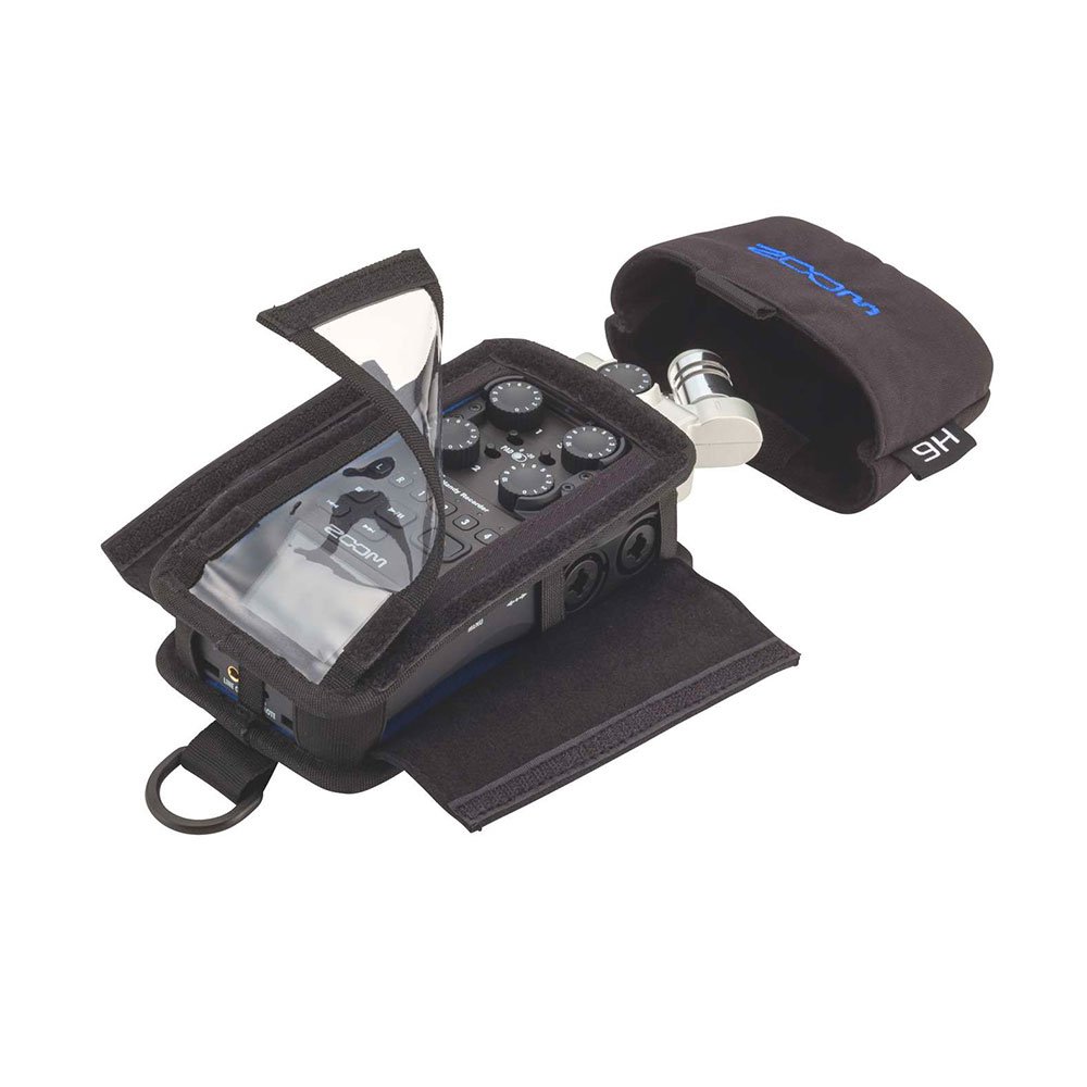 ZOOM PCH-6 WEICHE H6-HÜLLE. Tasche für den tragbaren Recorder Zoom H6, hergestellt aus wasserdichtem Material mit transparentem Frontfenster zur Überwachung, Mikrofonabdeckkapsel und Befestigungshaken.