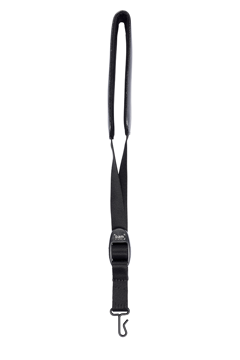 BAM ITALIA ST-0034 TRACOLLA IN PELLE IMBOTTITA PER STRUMENTI A FIATO - GANCIO IN METALLO - NOIR