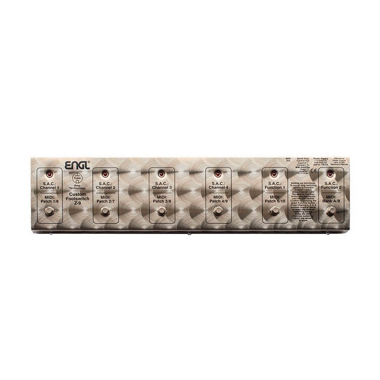 Z9 SAC MIDI FOOT CONTROLLER - Fußcontroller - Ideal für E330 MK2 (Screamer MK2 Combo), E610 MK2 (Savage 120 MK2), E630 MK2 (Savage 60 MK2), E642 MK2 (Invader 100 MK2), E645 MK2 (Powerball MK2), E646 (Victor Smolski Signature Head), E650 MK2 (Ritchie Blackmore Signature Head), E651 (Artist Edition 100), E653 (Artist Edition 50), E656 (Steve Morse Signature Head), E766 (Marty Friedman Signature Head), E344 (Raider Combo), E365 (Sovereign Combo), E570 (Preamp 19" Special Edition), E642 (Invader 150), E642 MK1 (Invader MK1 100), E670 (Special Edition), E762 (Retro Tube 50), E765 (Retro Tube 100) und E768 (Retro Tube 50 Combo) - Gehäuse aus Stahl - 6 Fußschalter mit LED-Anzeigen - Kompatibel mit ENGL-Amps mit SAC - MIDI-Modus mit 10 abrufbaren Speicherplätzen - 8 m Kabel - Abmessungen: 50x12x5 cm - Gewicht: 1,8 kg.