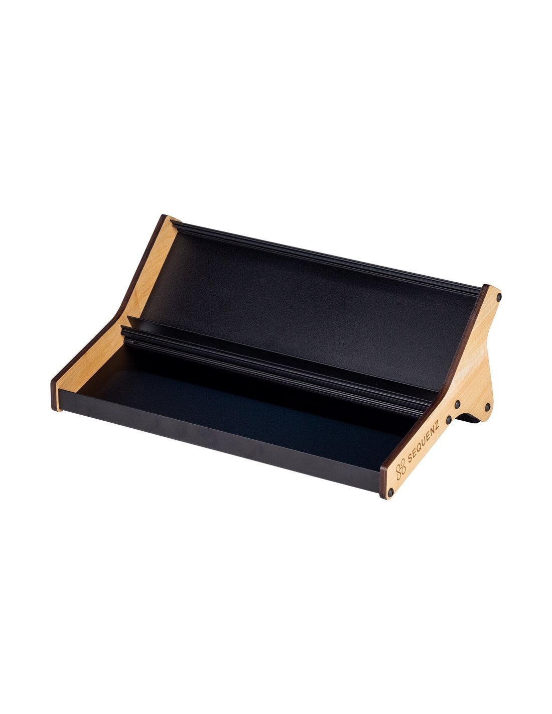 Die asymmetrischen Seitenpaneele ermöglichen es, das Rack je nach Bedarf auf eine der beiden Dimensionen zu kippen: Höhe oder Länge. Die Enden sind aus Holz gefertigt, um mehr Robustheit und ein professionelleres Aussehen zu verleihen.