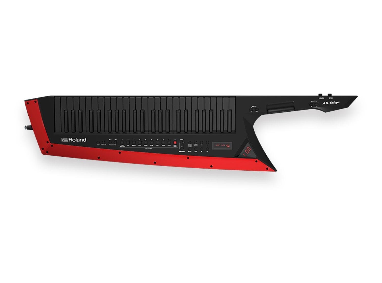 The AX-Edge Black is a black Roland MIDI Keytar, with 49 keys. It is equipped with a built-in vocoder, more than 500 preset sounds, pressure sensitive modulation bar and ribbon, posture controls, hold, octave selector, program change buttons, dual LCD display system and wireless connectivity via Bluetooth MIDI