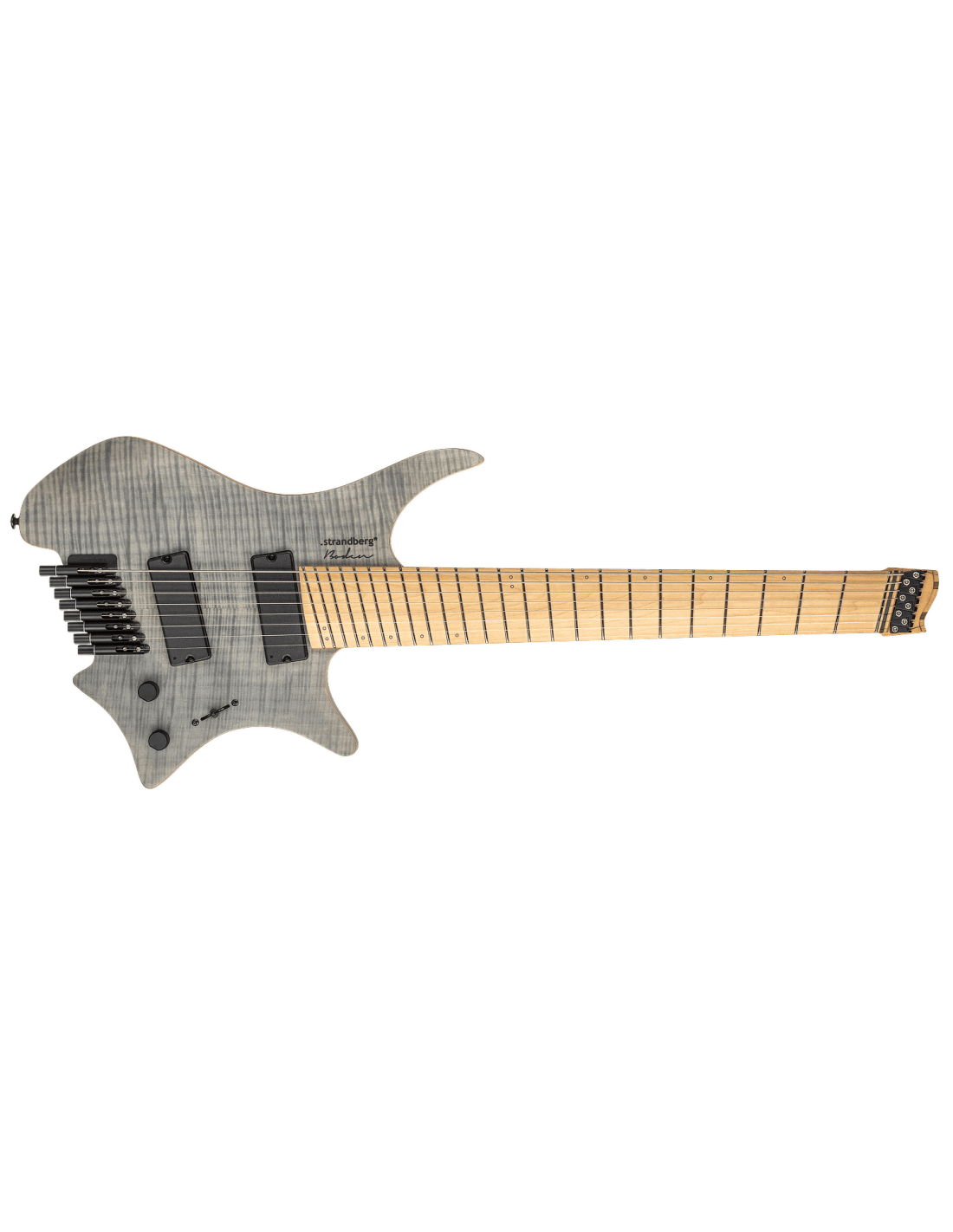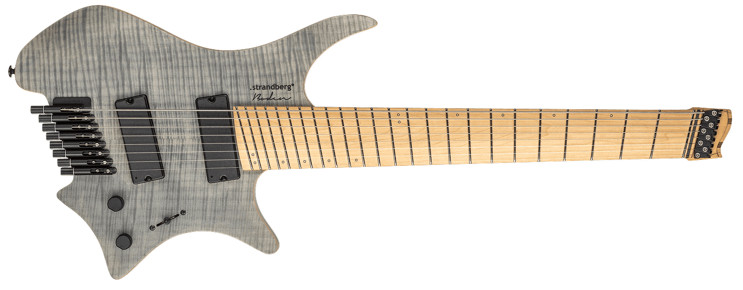 STRANDBERG BODEN STANDARD NX 8 CHARCOAL is a Strandberg Boden Standard NX 8 solid body solid body electric guitar with ash body, maple top, carbon reinforced maple neck, EndurNeck profile, multiscale wobbled maple fingerboard with 24 Jescar 51100 frets and Original Luminlay Green and Side Dots inlays, stainless steel nut, black chrome hardware, Strandberg EGS Pro Rev 7 Fixed bridge, double-action Truss Rod. The HH-configuration passive electronics consists of 2 Humbucker Strandberg Custom OEM 8-strings Soapbar pickups at the bridge and neck with volume and tone controls and a 5-way pick up selector. Includes Strandberg Gig Bag
