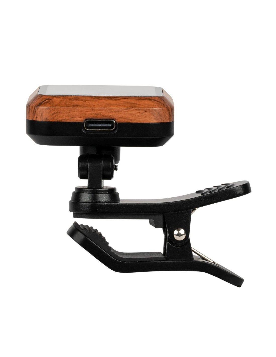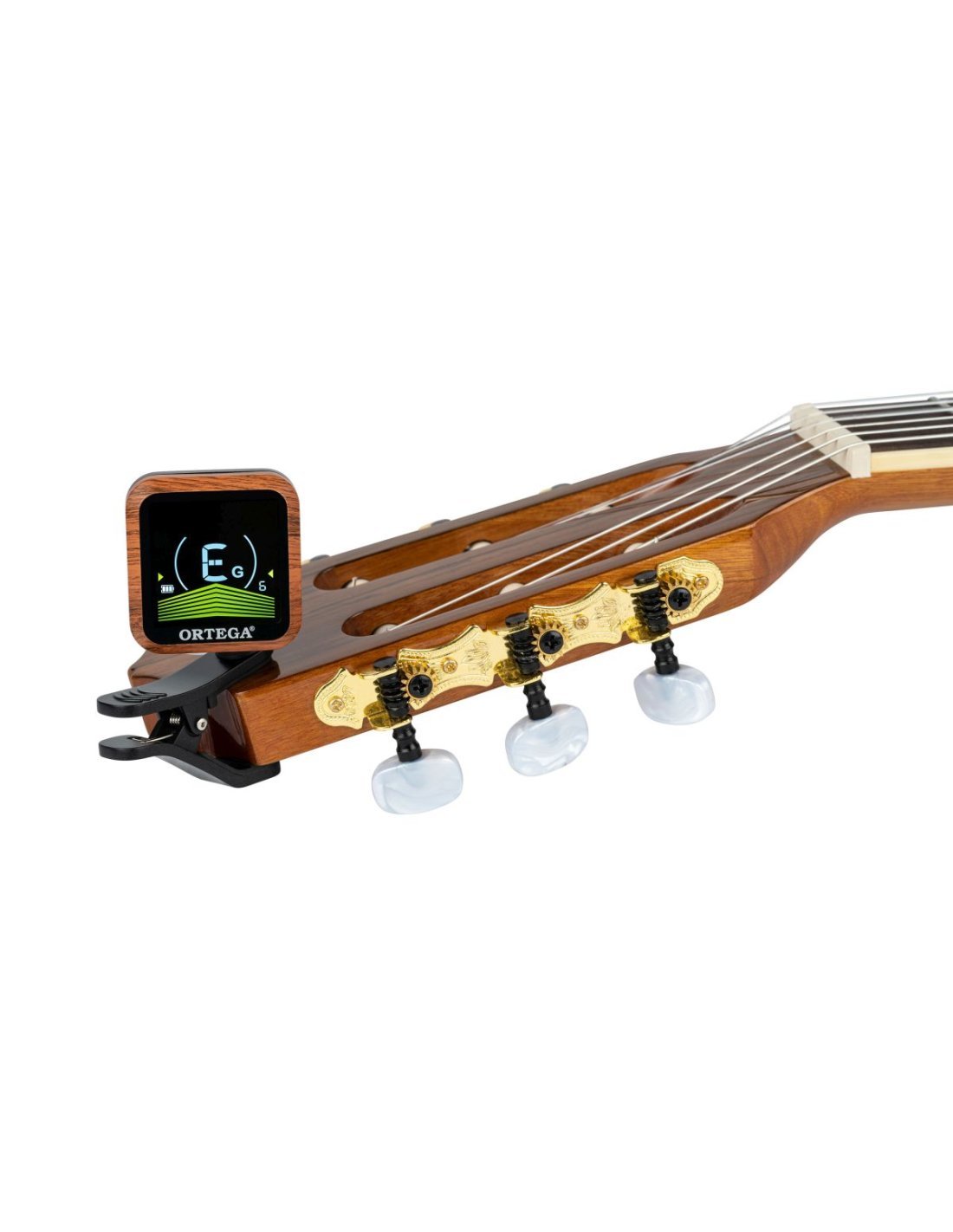 The new Ortega OETRC tuner offers you precise tuning with the convenience of a clip-on paddle tuner. The chromatic multi-mode clip-on tuner for guitar, bass and ukulele. The rechargeable tuner has a very bright and clear VA-LED display that is easy to see in many different lighting situations. A USB-C charging cable included with the clip-on tuner. Color VA-LED display Rechargeable Calibra 430Ð450 Hz Front display in wooden design case Charging time up to 15 hours Includes USB Type-C charging cable Ortega2023