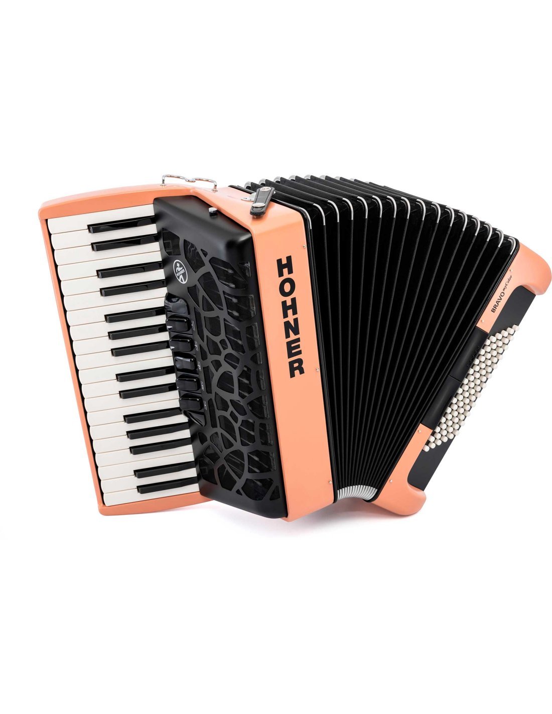 'HOHNER's BRAVO MyColor line offers a vibrant array of 10 modern colors, giving every accordionist the chance to find 'their color' in our expressive selection. With 72 basss/2 registers and 34 keys/5 registers in bass and treble respectively, this instrument represents a trademark of HOHNER mastery. In addition, the smooth response of the SilentKey keyboard and the sleek design of the register keys add a touch of refinement to the musical experience. With BRAVO MyColor, musicians don't just get an accordion, but a guarantee of exceptional quality they can count on and an unforgettable presence that enhances their history and prestige. Its versatility makes it suitable for both amateurs and professionals in a variety of musical styles, making it a versatile and distinctive choice. Features: -Left hand: 72 bass/2 registers. -Right hand: 34 keys/5 registers. -Silentkey: Soft-touch keyboard for the right hand. -Registers: surface knobs with an elegant design'
