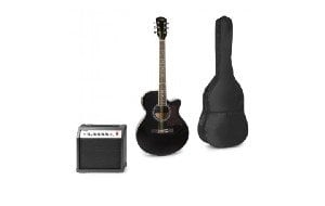 The ShowKit contains an acoustic guitar with steel strings and a guitar amplifier and is made with the best possible materials and workmanship at a very affordable price! The included Max Amp provides the perfect starting point for any guitarist. This guitar amplifier offers a wide range of features with excellent sounds for a variety of musical applications, whether you're an entry-level musician or a seasoned professional. The kit comes with a durable nylon carrying bag, a digital tuner, picks, a guitar strap, and a set of replacement strings.