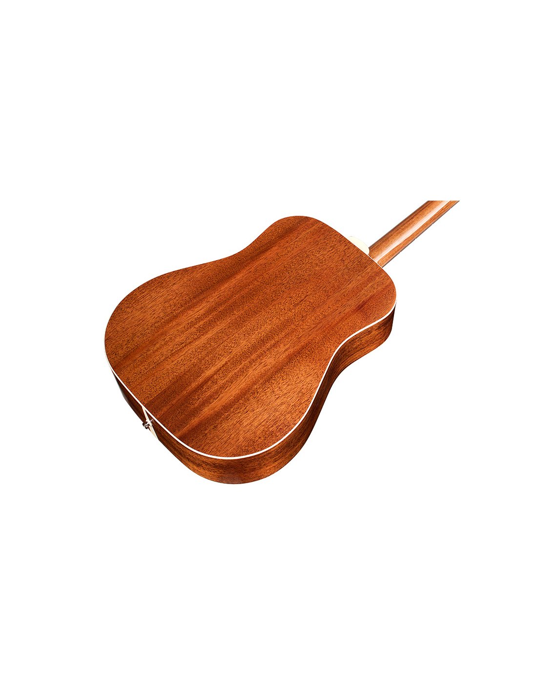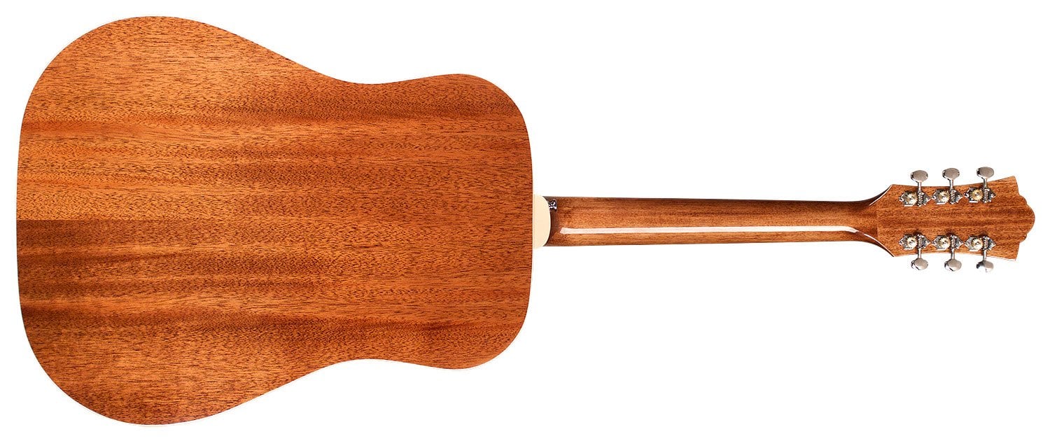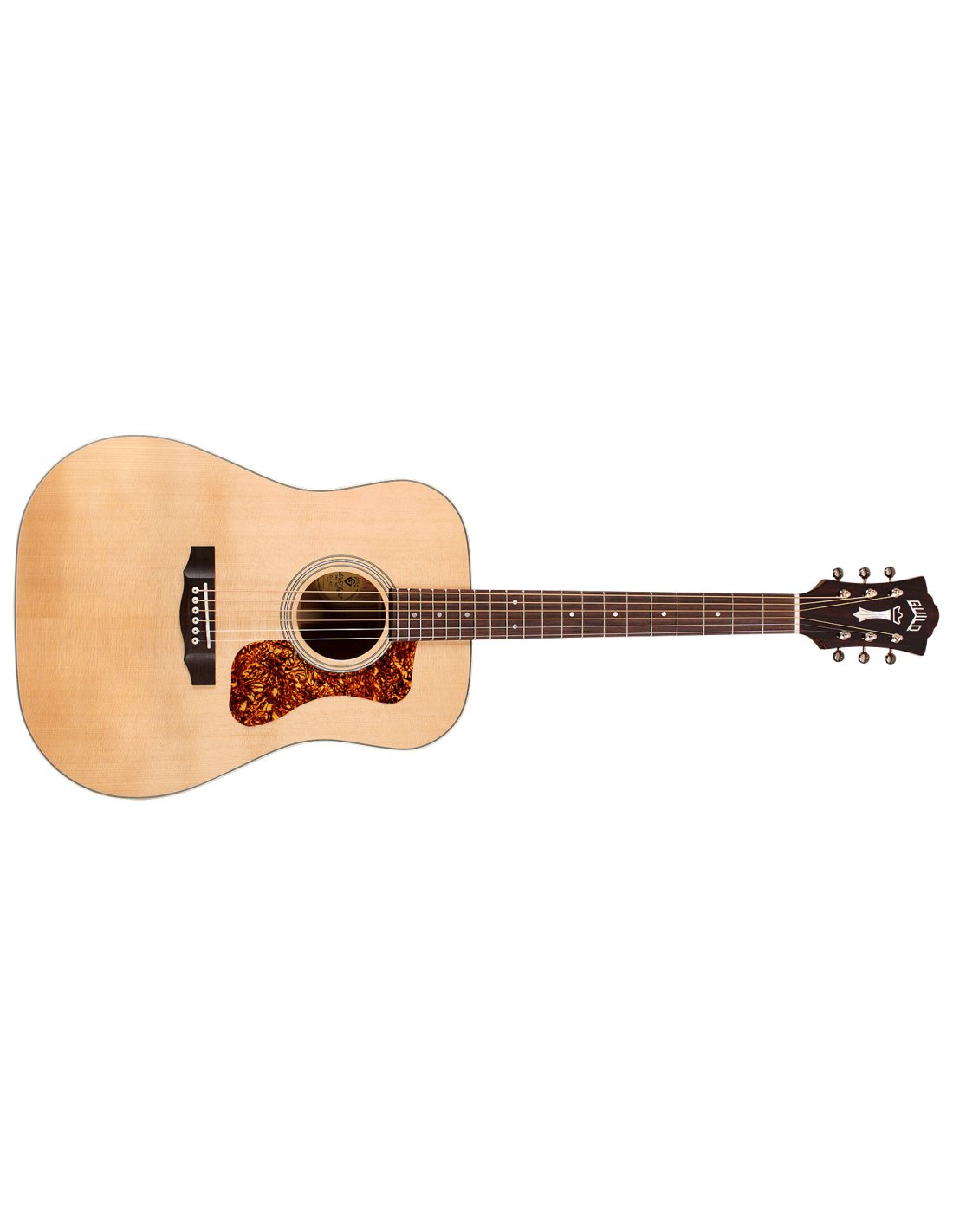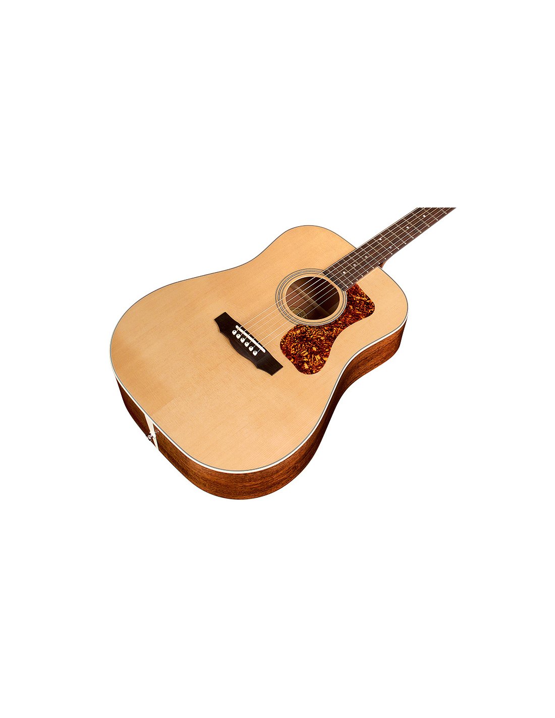 The D-140 has the classic Dreadnought shape, offers excellent sound balance and a present and dynamic tone. Built with solid Sitka spruce top, solid African mahogany back and sides, the D-140 has a 25 1/2” (648 mm) scale and a nut width of 1 ¾” (44.5 mm), the Guild vintage-style handle is in mahogany (Profile C) with rosewood fingerboard and bridge, the bone nut and cross, the mother-of-pearl rosette, the turtle celloid pickguard inspired by Vintage instruments, the open vintage-style mechanics with 18:1 ratio complete the equipment. This model also features the iconic Guild Chesterfield headstock with mother-of-pearl logo, reminiscent of Guilds from the 1960s. It includes the new lightweight polyfoam case. The finish is glossy polyurethane (Gloss) natural.