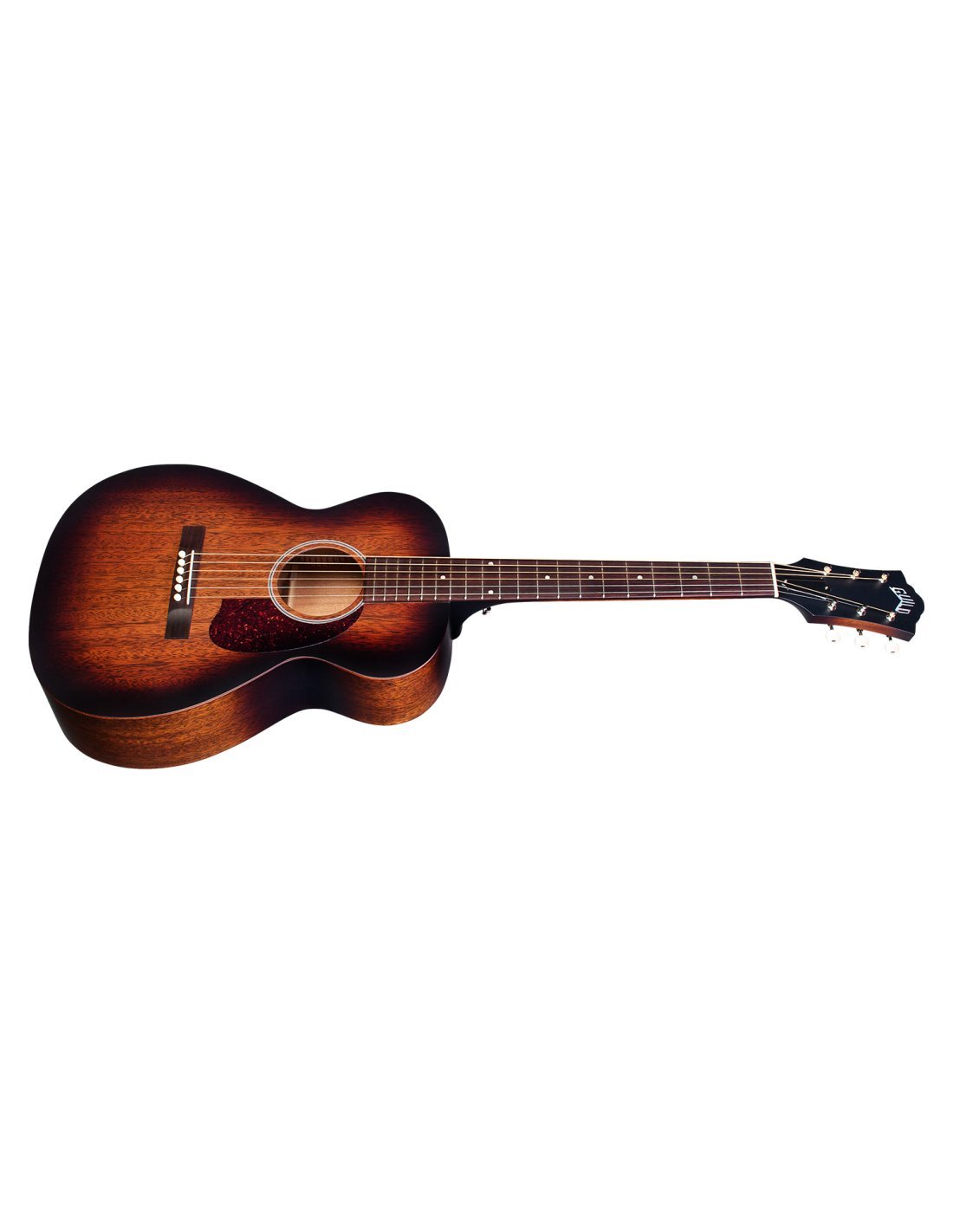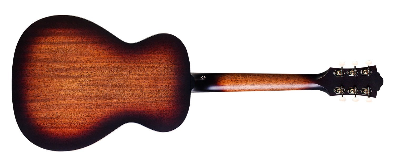 'The iconic Guild M-20 VSB made in the USA was the first guitar on the 1967 production line when the company grew so big that it had to move to a new building in Westerly, RI. Almost 50 years later, the story is repeated in a new plant in California. The M-20 VSB is a concert-shaped guitar built with solid mahogany top, back and sides, known as “Nick Drake's guitar”, for being used in Drake's album 'Bryter Layter'. The guitar has a rosewood bridge and fingerboard, nut (44.5 mm) and saddle are in bone, the scale is 628 mm, the mahogany neck Profile C with satin finish. The very light finish is Vintage Sunburst satin polyurethane that allows this guitar to vibrate like those of the past!. The M-20's equipment includes a vintage-style rosette and the mother-of-pearl Guild logo on the headstock. Each M-20 VSB comes with a numbered certificate of authenticity and comes with a hard case. '