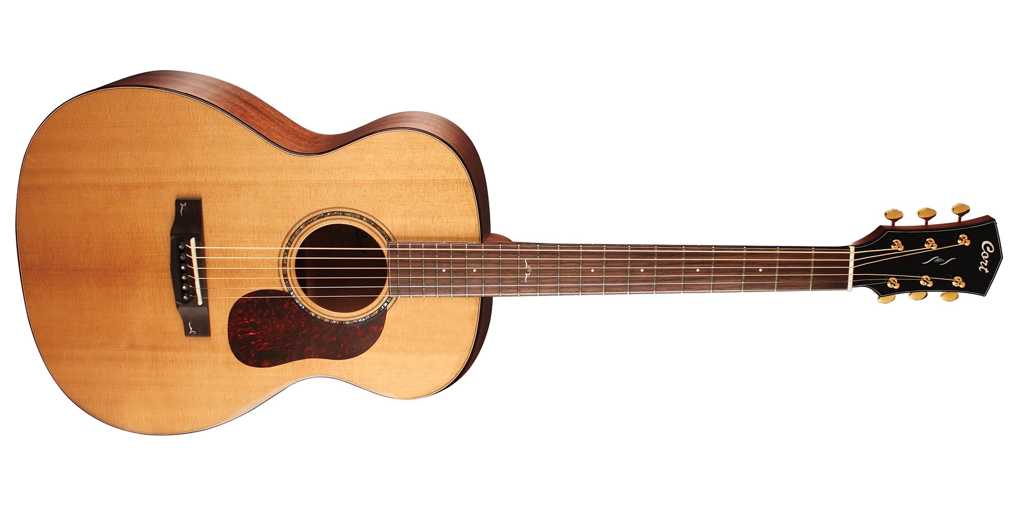 Cort Gold O6 Acoustic Guitar color NATURAL. The Cort Gold O6 is a 6-string acoustic guitar. Technical features include solid mahogany back and sides, solid torrefied sitka spruce top, mahogany neck, Macassar ebony fingerboard. Case included