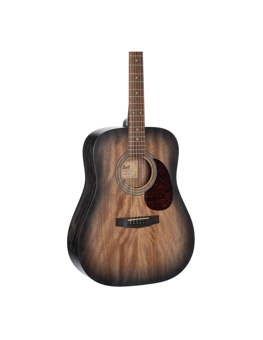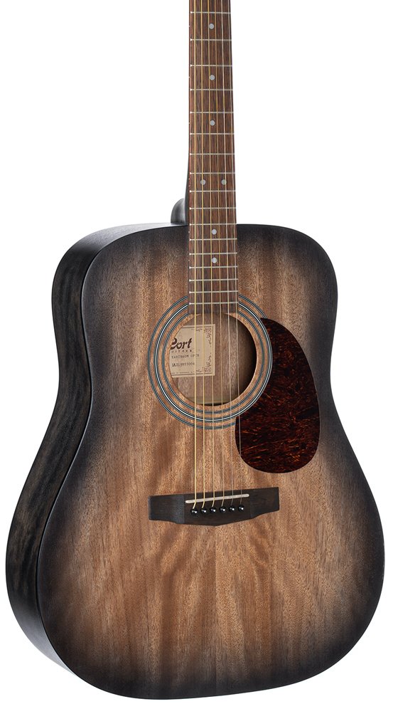 Chitarra Acustica<br /><br />• Serie: Cort Earth<br />• Costruzione: Dovetail Neck Joint, 14° tasto<br />• Scala: 25.5" (648 mm)<br />• Cassa Armonica: Dreadnought <br />• Catenatura: Advanced X-Bracing<br />• Fondo e Fasce: Mogano laminato<br />• Binding: Black<br />• Top: Mogano massello<br />• Manico: Mogano<br />• Tastiera: Merbau<br />• Capotasto: 43 mm (1 11/16")<br />• Inlay tastiera: Dot<br />• Tasti: 20<br />• Meccaniche: Cort cromate<br />• Rosetta: ABS<br />• Ponte: Merbau<br />• Corde: Rivestite<br />• Colori: OPTB - Open Pore Trans Black Burst<br />• Cort Gig-Bag inclusa
