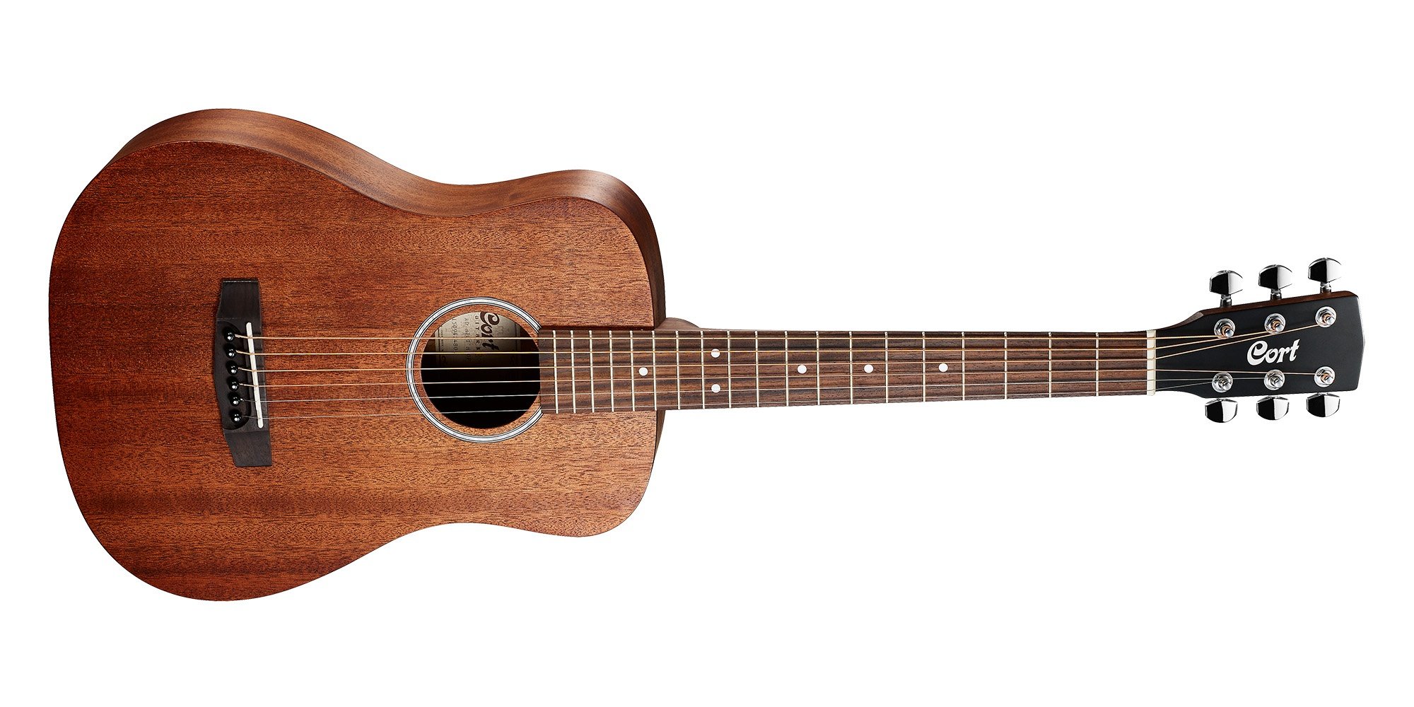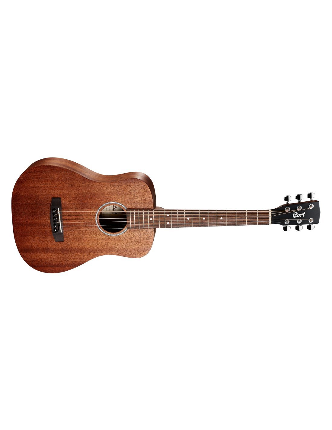 Chitarra acustica tipo dreadnought mini. Dimensioni 3/4. Tavola, fasce, fondo e manico in mogano. Tastiera e ponte in palissandro. 19 tasti. Scala 22,8. Finitura Open Pore. Custodia inclusa.