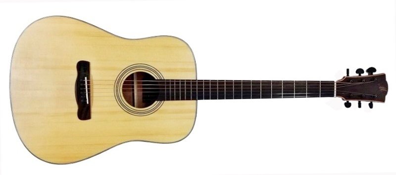 Merida C10D Acoustic Guitar color NATURAL. The Merida C10D is a 6-string acoustic guitar. Technical features include sapelli back and sides, solid spruce top, mahogany handle, rosewood fingerboard