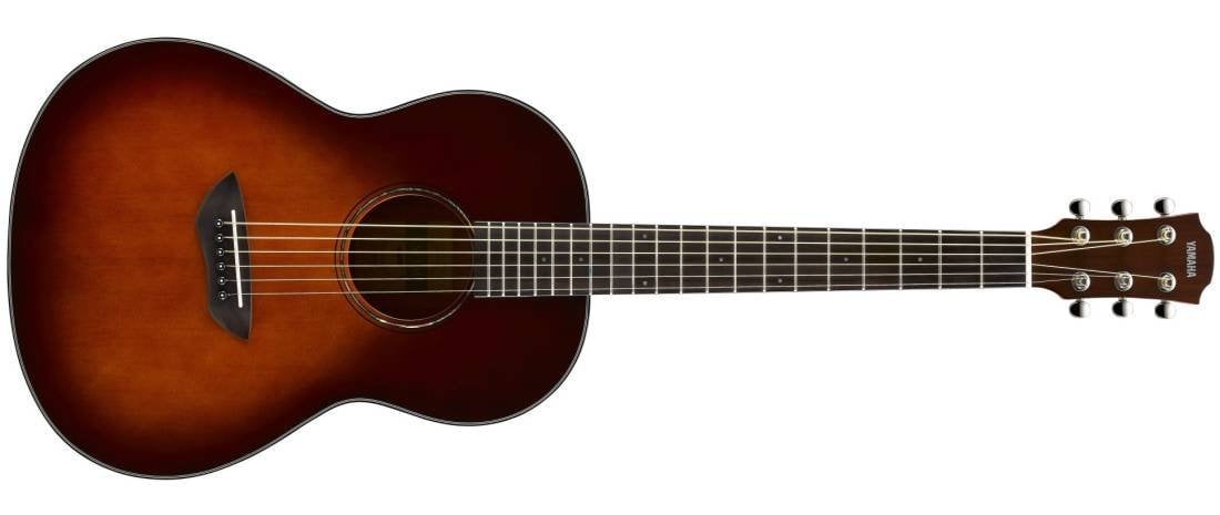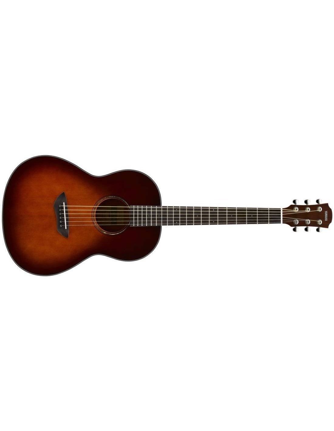 Yamaha CSF1M Electrified Acoustic Guitar, Tobacco Brown Sunburst color. The Yamaha CSF1M is a 6-string, Parlor-type electrified acoustic guitar. Solid fir board, Scalloped Bracing, Mahogany back and sides. Nato neck with Rosewood fingerboard, 20 frets, 16" radius. Short scale, 23.6". Equipped with a passive Piezoelectric pickup. Case included.