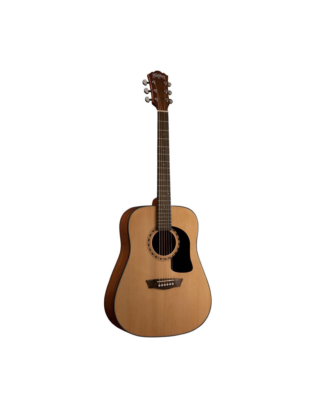 Dreadnought Acoustic Guitar, Spruce Top, Mahogany Back and Bands, Natural Color Every journey starts somewhere and the AD5 is a safe place to start. Washburn's experience has produced a guitar that is the perfect balance between stability, tone and elegance, with a spruce top and mahogany back and sides for a rich, full sound. Those looking for a guitar that sounds great, looks good and follows them in their progress, will find the Washburn AD5 a guitar perfectly suited to them. Specifications: Shape: Dreadnought Top: Spruce Back/Bands: Mahogany Handle: Mahogany Keyboard: Engineered WoodRosette: Washburn Heritage Reinforcement: Scalloped Reinforcement Bridge: Engineered WoodNut: Plastic, width 1-11/16” Inlays: Dots Mechanics: Die-cast Chrome Number of Keys: 20 Keys Scale: 25.5 Color: Natural Finish: Glossy Strings: D'Addario EXP16