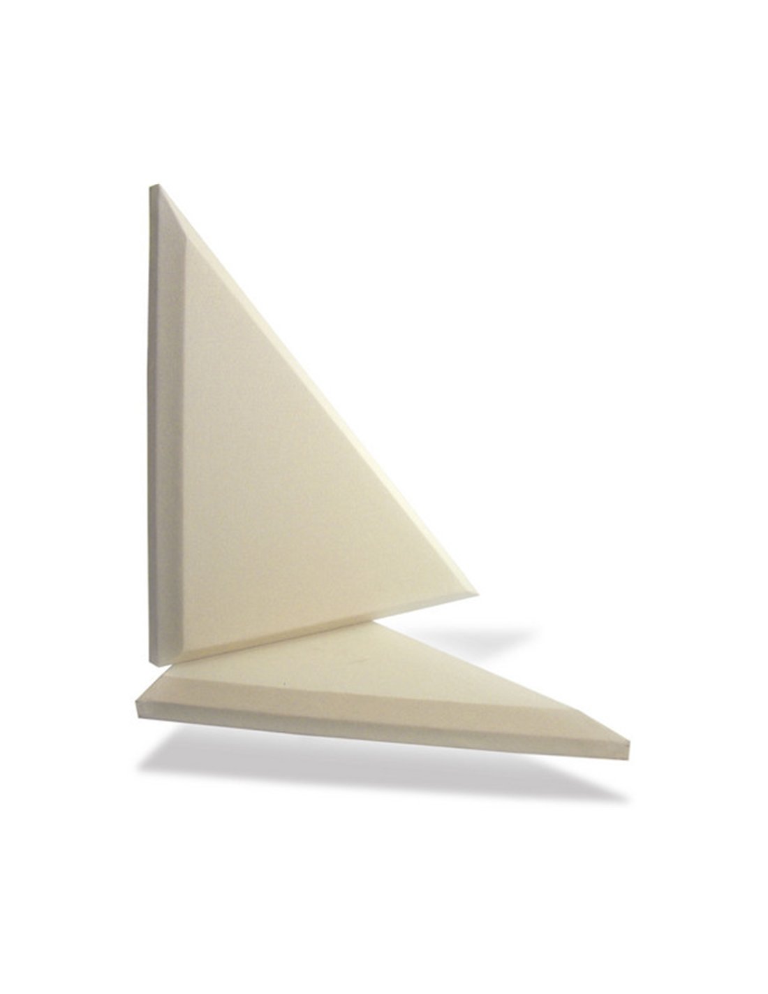 Triangular panel. Dimensions = 61 x 61 x 86.4 cm with a thickness of 5.08 cm. In Class 1A. Packs of 2 pcs. Beige color.